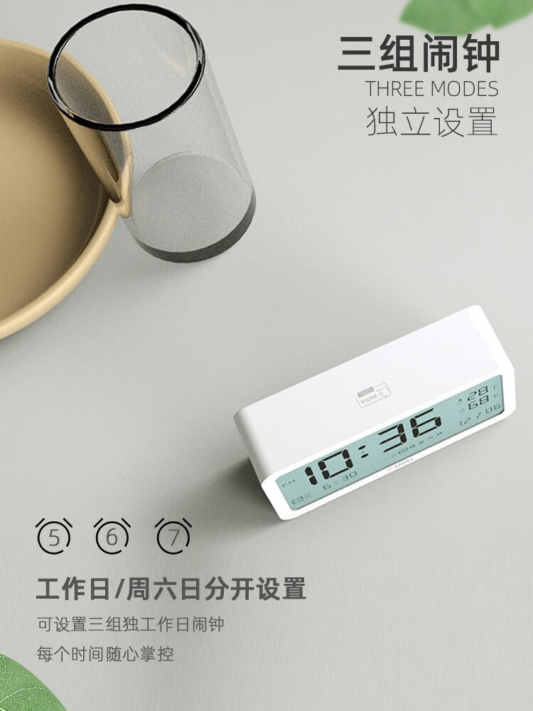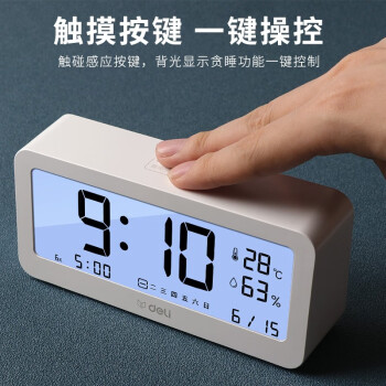 得力(deli) 多功能電子鬧鐘學(xué)生用臥室床頭簡約智能溫濕度計桌面夜光靜音數(shù)字智能時鐘表 大號白色【192*88*50mm】8827