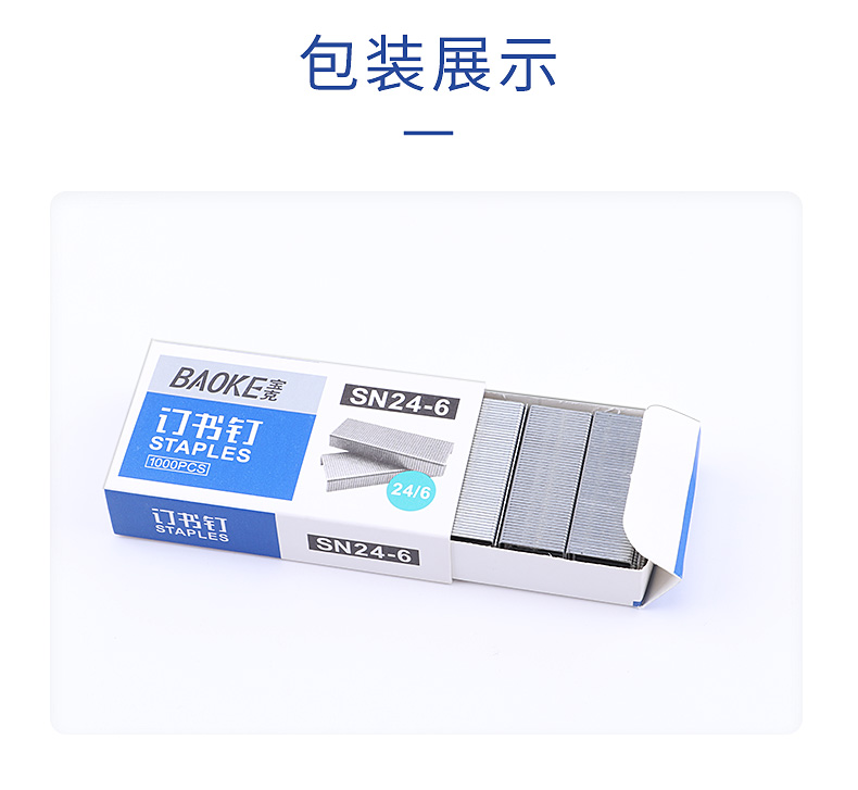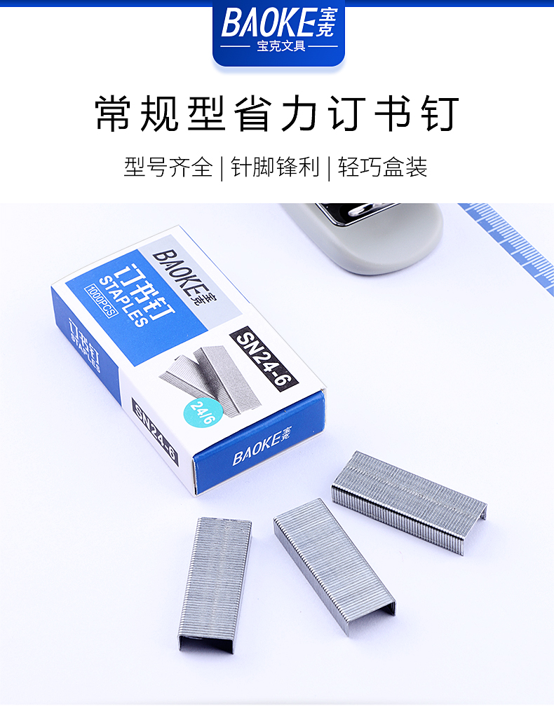 寶克(BAOKE)SN24-6 裝訂及打孔類 常規(guī)型省力訂書釘13*6mm 10小盒