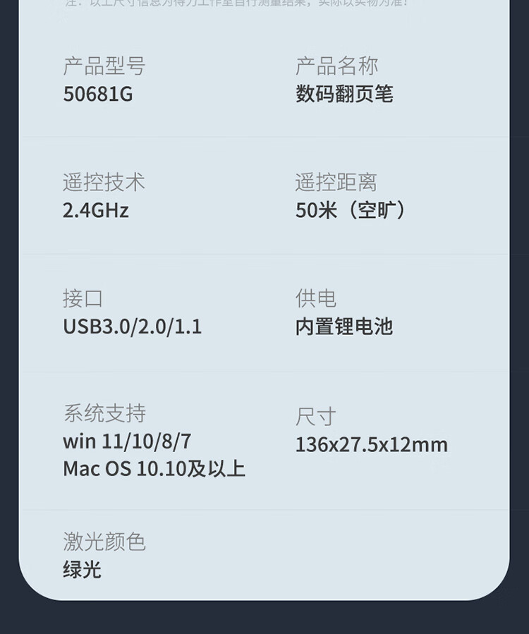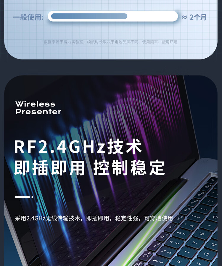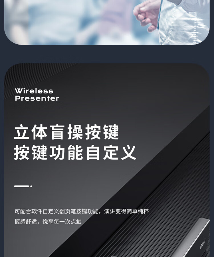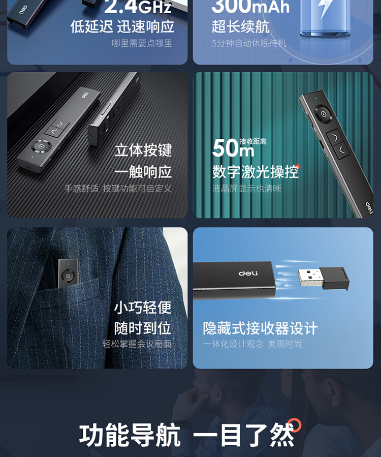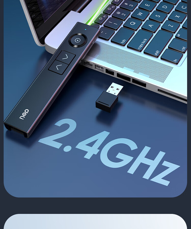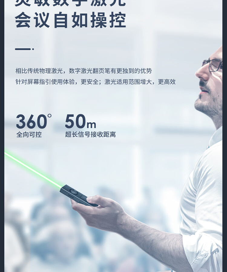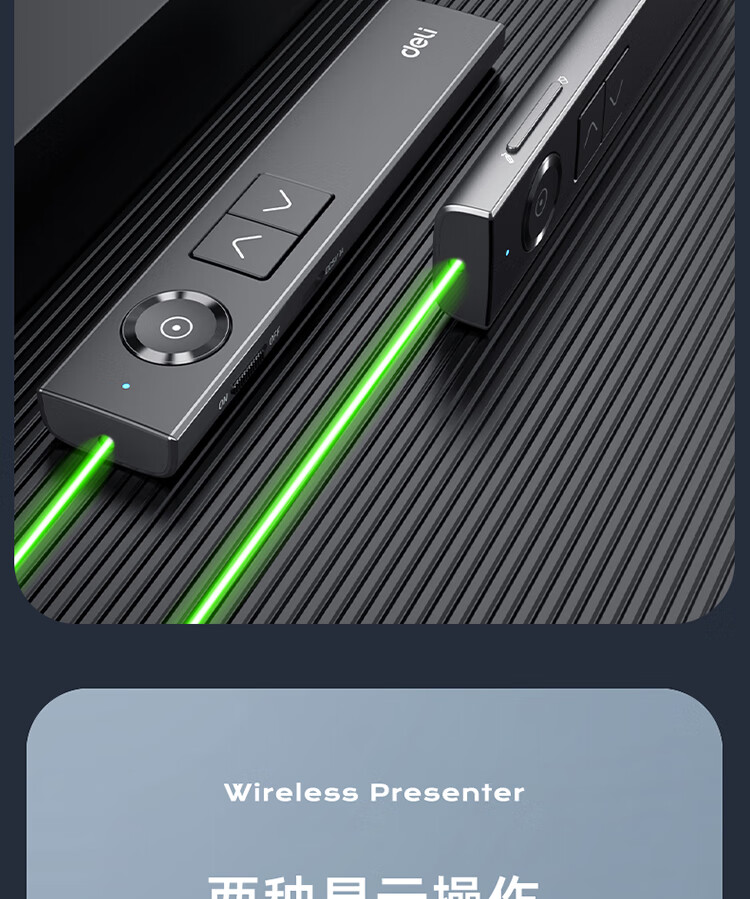 得力(deli)激光翻頁筆Spotlight無線演示器空中鼠標 聚光燈激光筆 ppt投影筆 LED液晶大屏 綠光50681G