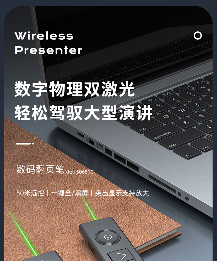 得力/deli 50681G 激光筆 激光翻頁筆Spotlight無線演示器空中鼠標 聚光燈激光筆 ppt投影筆 LED液晶大屏