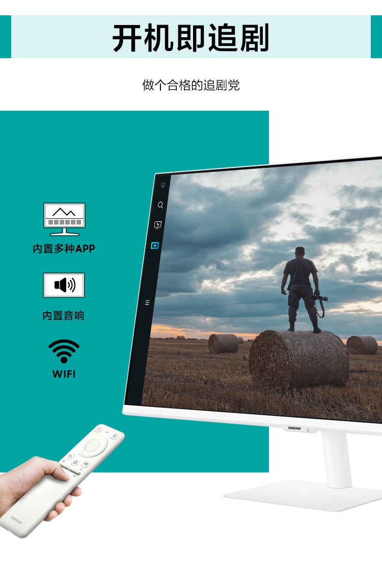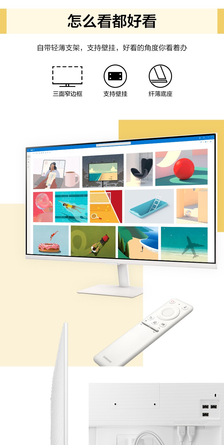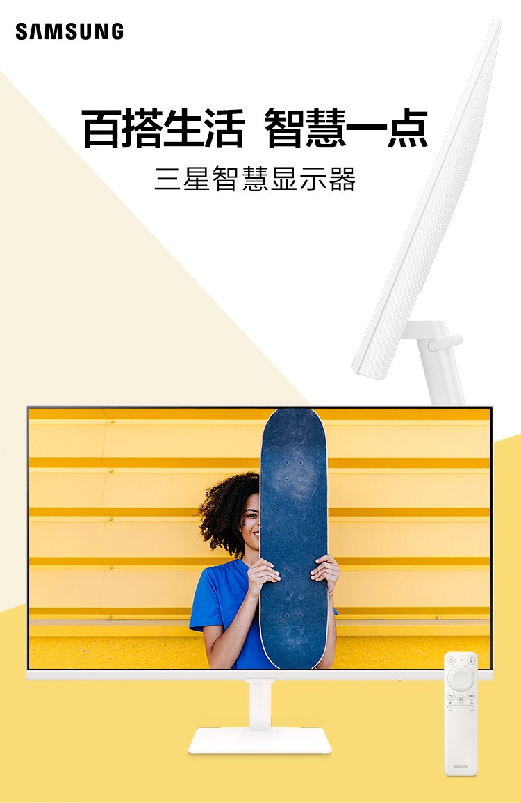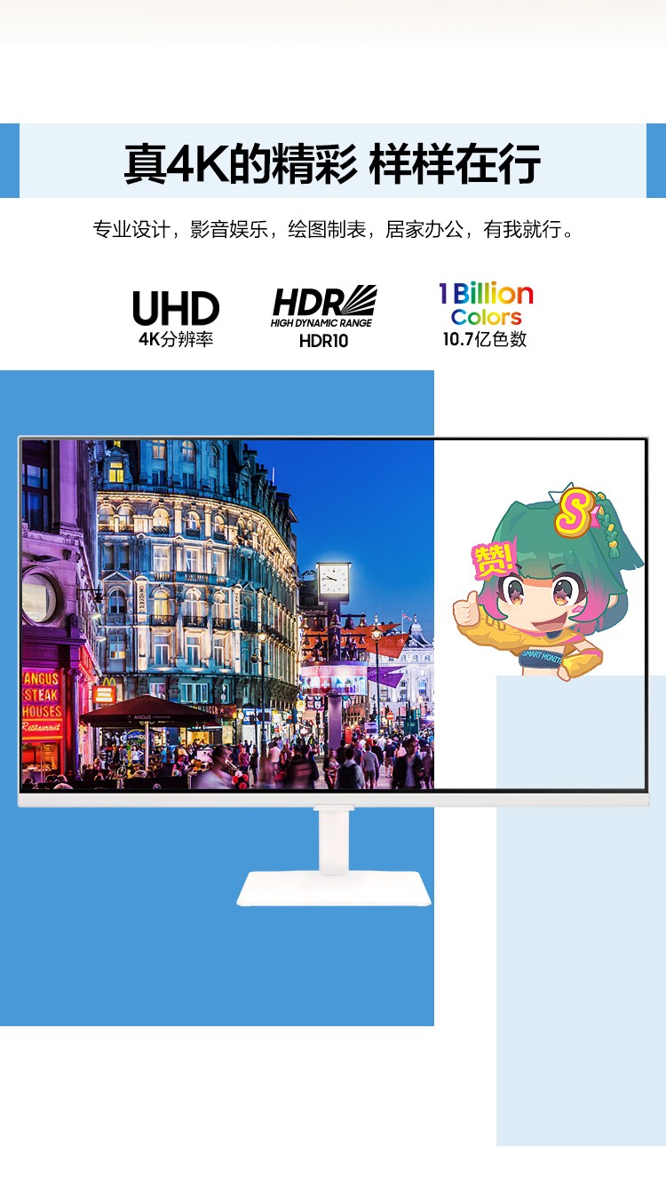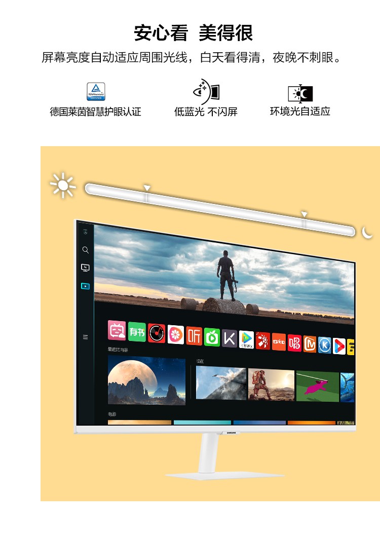 三星(SAMSUNG) S32CM701UC 液晶顯示器 32英寸4K高清智慧顯示器Type-C接口無線投屏內置APP內置音箱藍牙連接 護眼防藍光