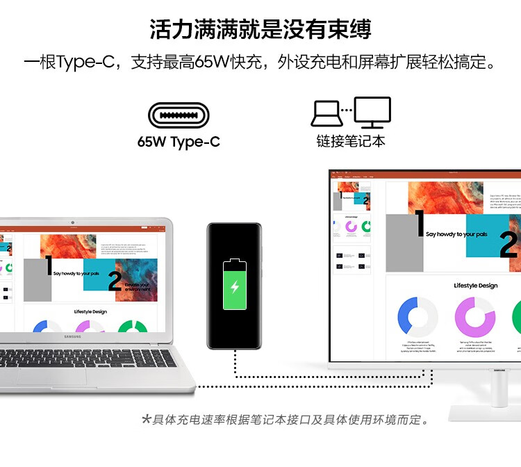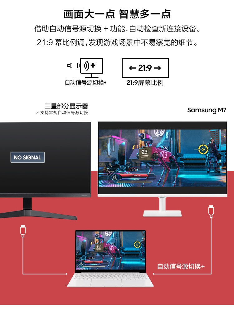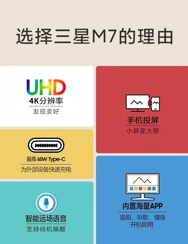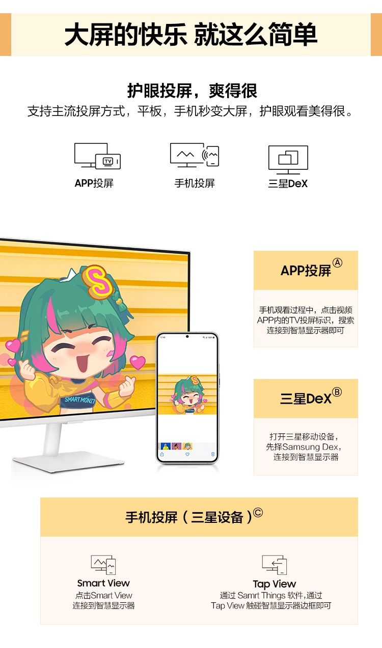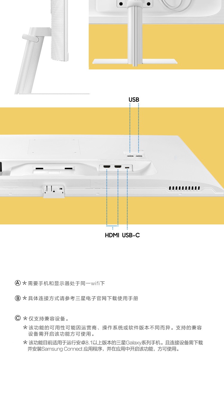 三星(SAMSUNG) S32CM701UC 液晶顯示器 32英寸4K高清智慧顯示器Type-C接口無線投屏內置APP內置音箱藍牙連接 護眼防藍光