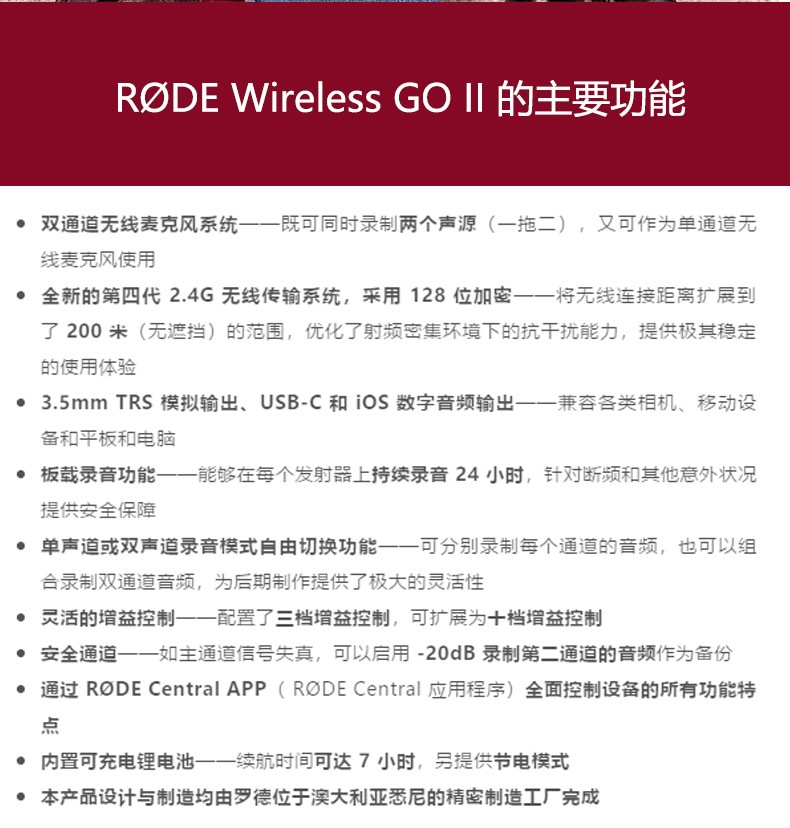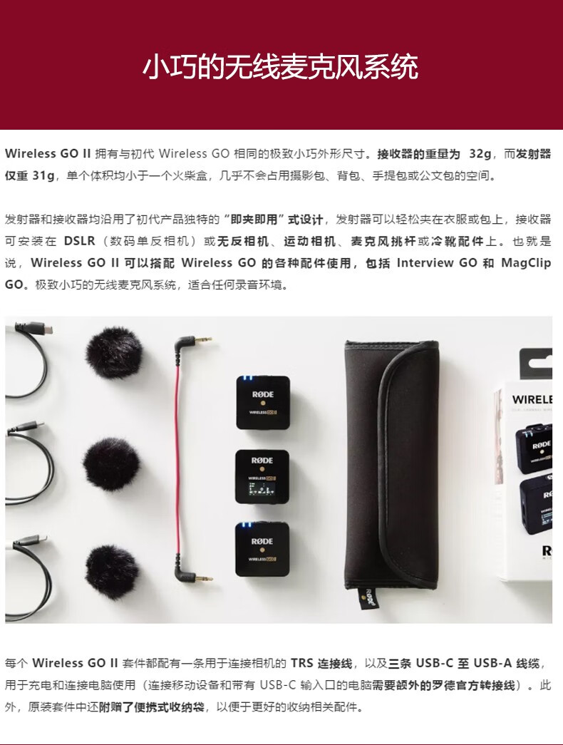 羅德/RODE wireless go 麥克 II一拖二無線領(lǐng)夾麥克風(fēng)單反手機(jī)無線小蜜蜂采訪直播vlog收音 Wireless Go II 一拖二(標(biāo)配)