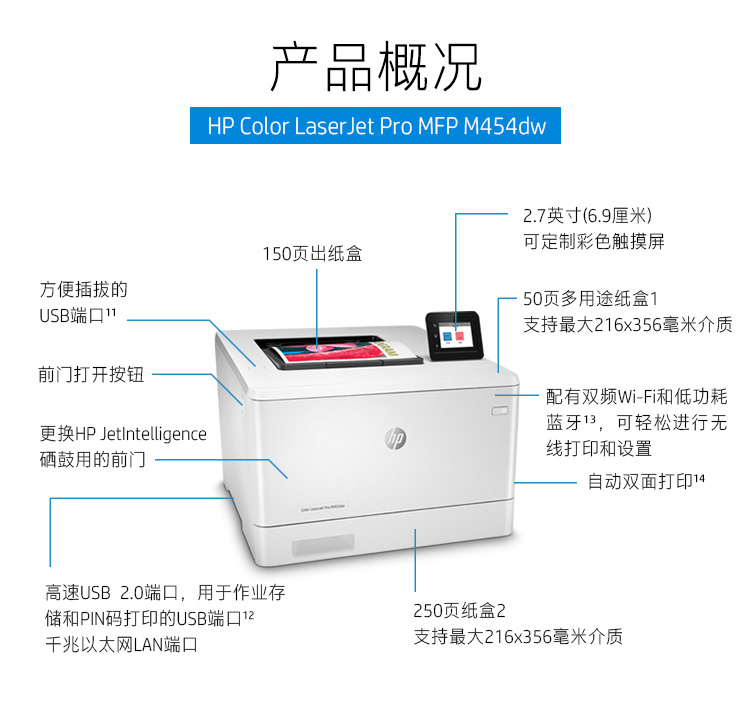 惠普/HP M454dw A4彩色打印機(jī) 激光打印機(jī) 彩色打印 液晶顯示屏 自動(dòng)雙面打印 無(wú)線連接