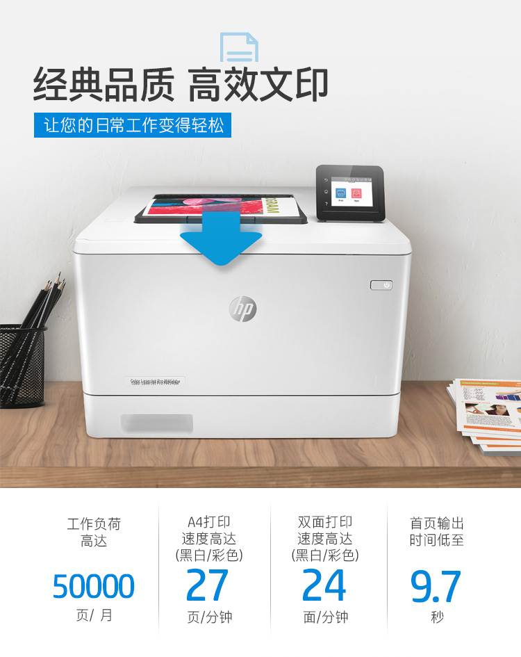 惠普/HP M454dw A4 彩色打印機(jī) 彩色打印 液晶顯示屏 自動(dòng)雙面打印 無(wú)線連接