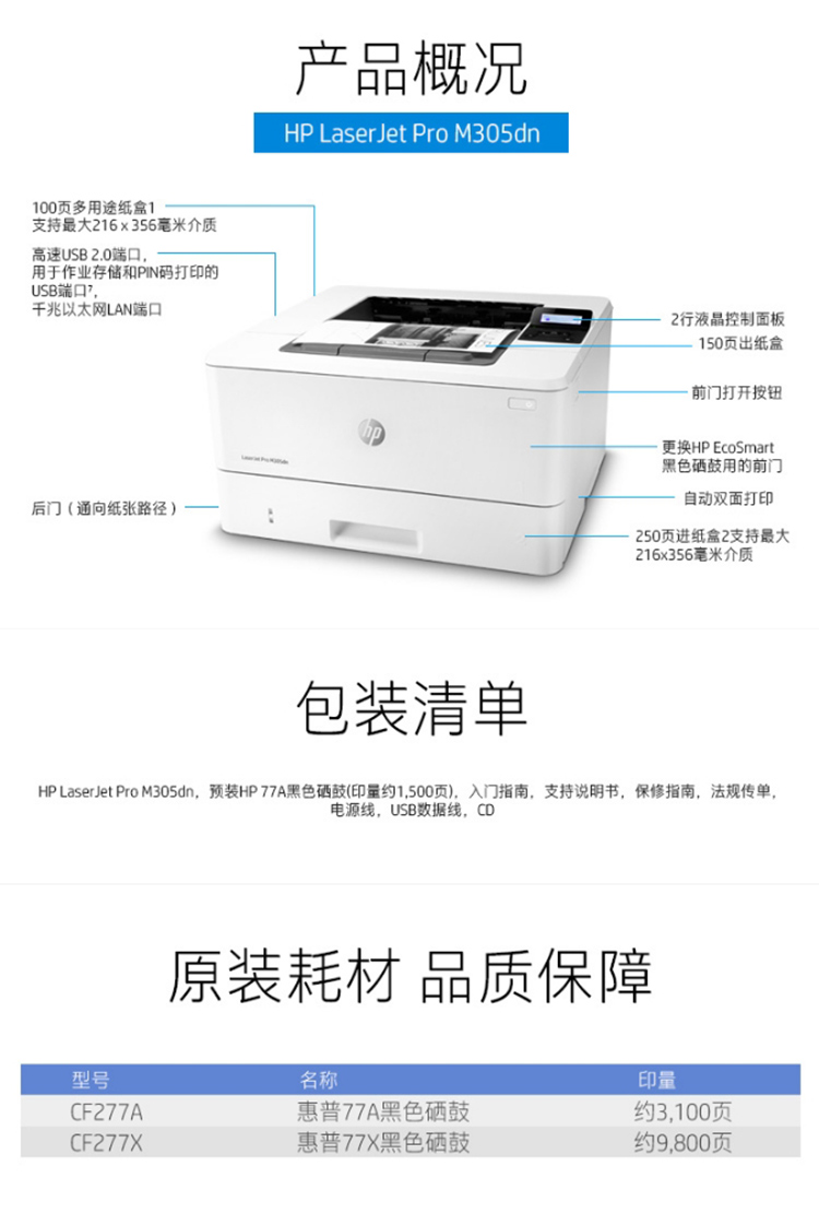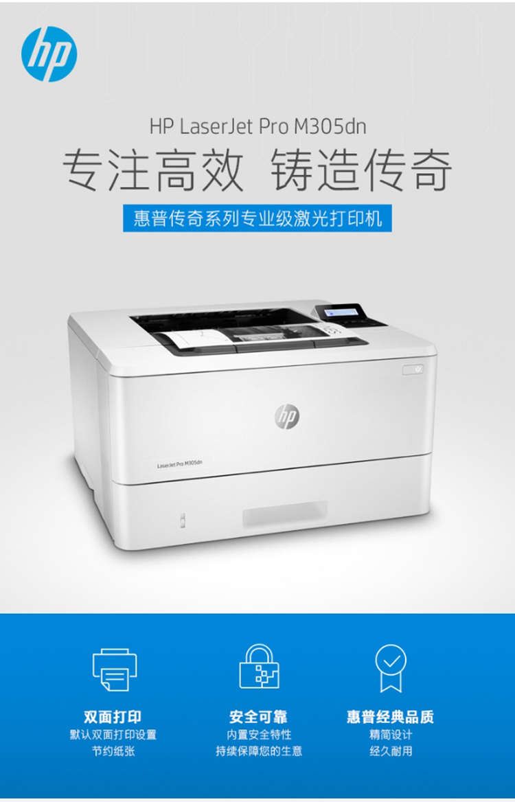 惠普/HP M305dn A4黑白打印機(jī) 自動(dòng)雙面打印 USB連接/有線網(wǎng)絡(luò)