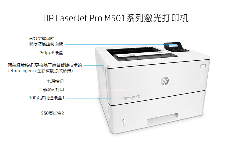 HP惠普打印機(jī)A4黑白激光雙面辦公 惠普M608n 官方標(biāo)配