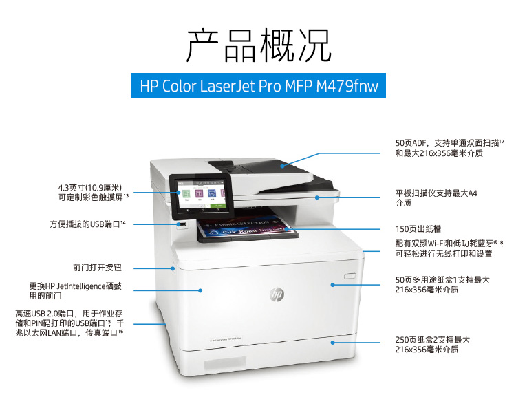 惠普(HP) M479fnw 彩色激光多功能一體機 無線打印復印掃描傳真四合一 自動輸稿器 M477fnw升級款