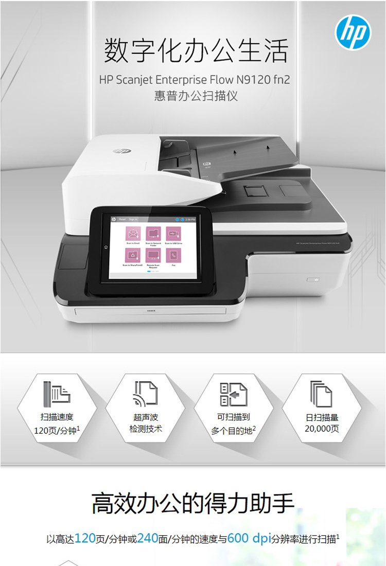 惠普/HP N9120fn2 掃描儀 A3企業(yè)級(jí)高速連續(xù)雙面自動(dòng)進(jìn)紙掃描機(jī) (速度120頁(yè)/分鐘)