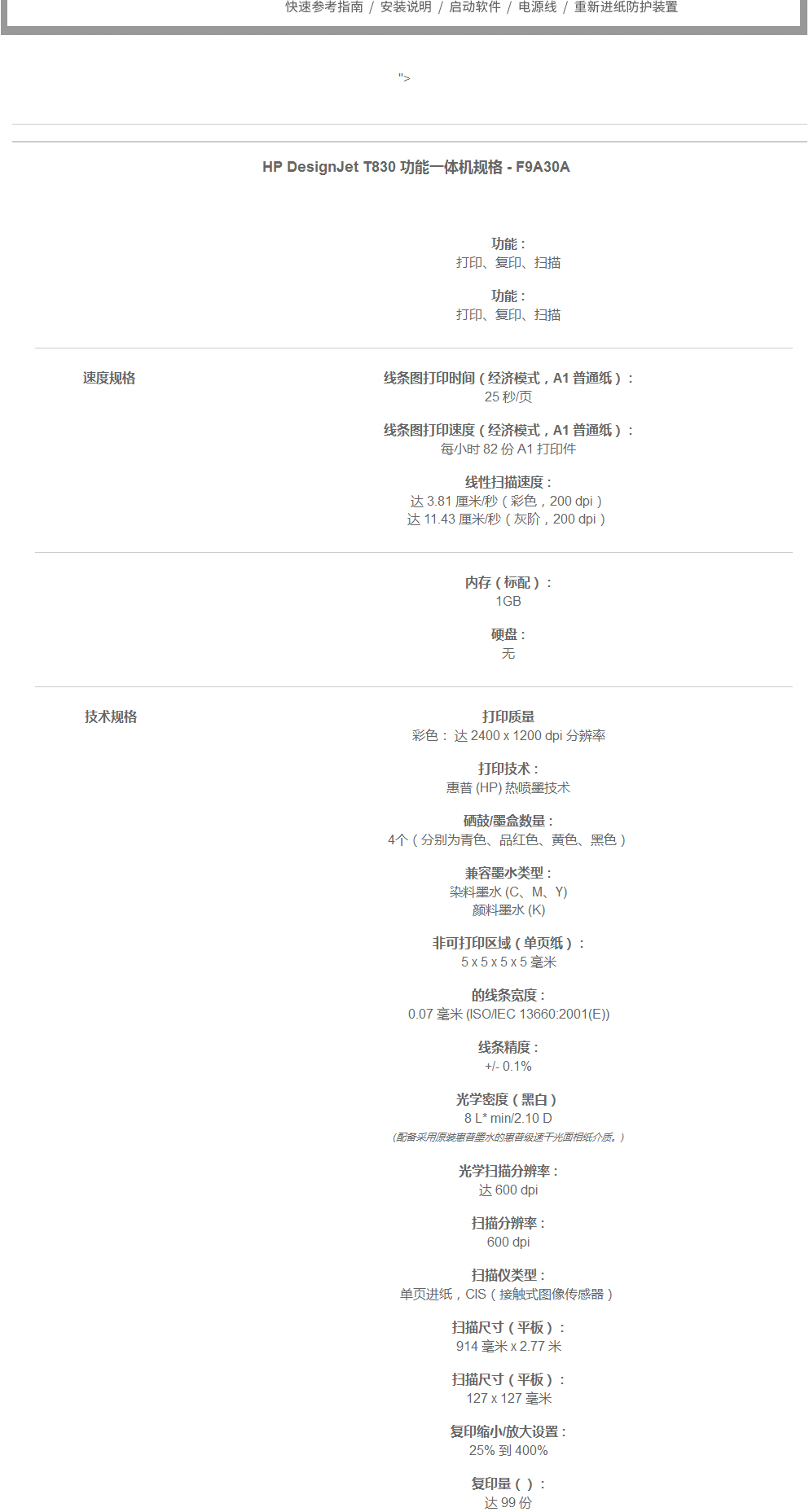 惠普/HP T830 A3 彩色打印機 繪圖儀 A0多功能一體機打印復印掃描大幅面打印機36英寸