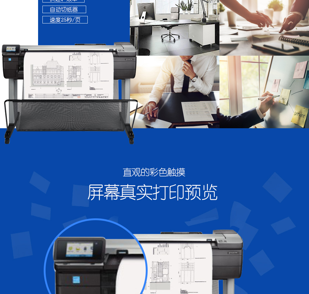 惠普/HP T2600PS A3 彩色打印機 大幅面寫真噴繪機打印機工程CAD及線條藍圖 A0-6色雙紙軸一體機