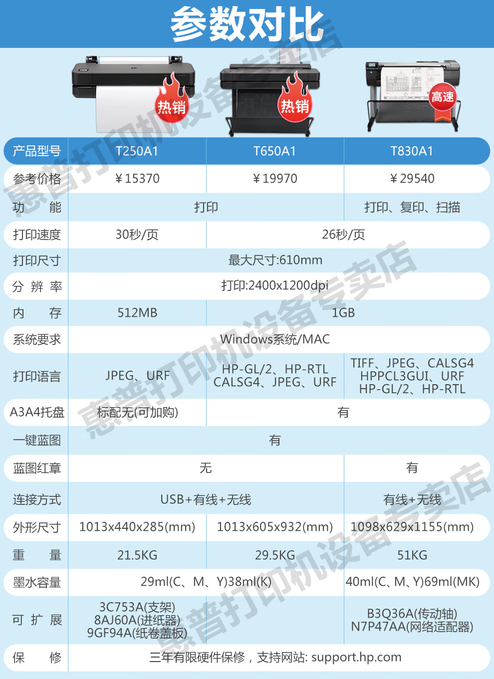 惠普(HP) 繪圖儀 A1A0t650\/730\/830大幅面寫真噴繪機打印機工程CAD及線條藍圖 T2600PS A0-6色雙紙軸一體機