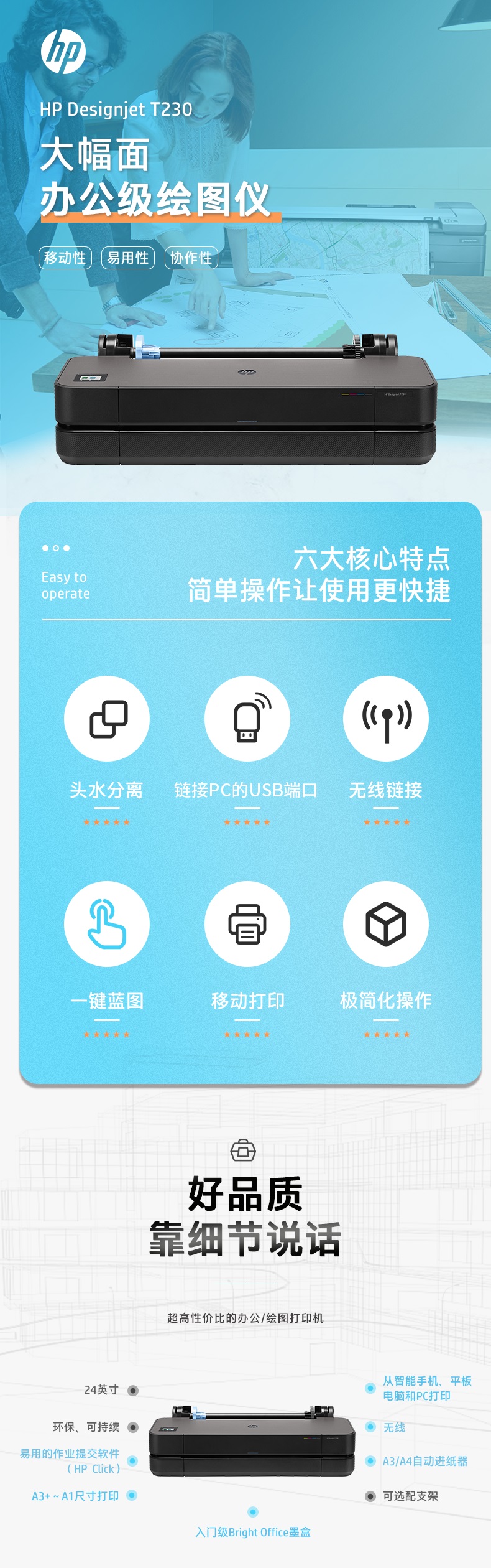 惠普(HP) DesignJet T230 24英寸大幅面臺(tái)式繪圖儀