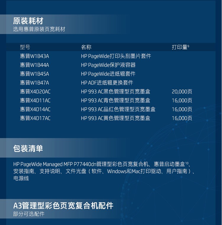 惠普/HP P77440dn A3 彩色打印機(jī) 管理型彩色頁(yè)寬復(fù)合 標(biāo)配