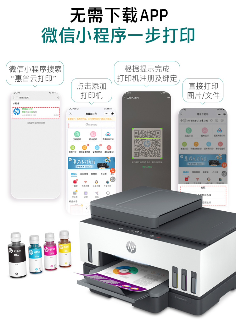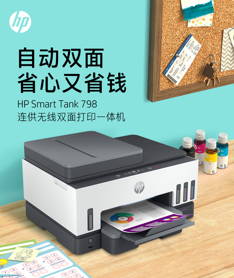 惠普(HP) 打印機 Tank 798 A4彩色噴墨復(fù)印掃描一體機雙面打印 [A4彩色一體機]798