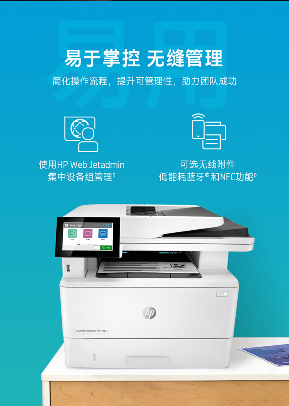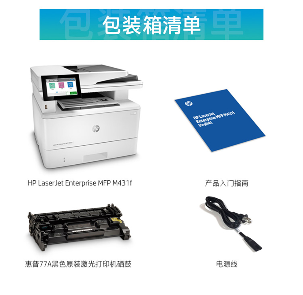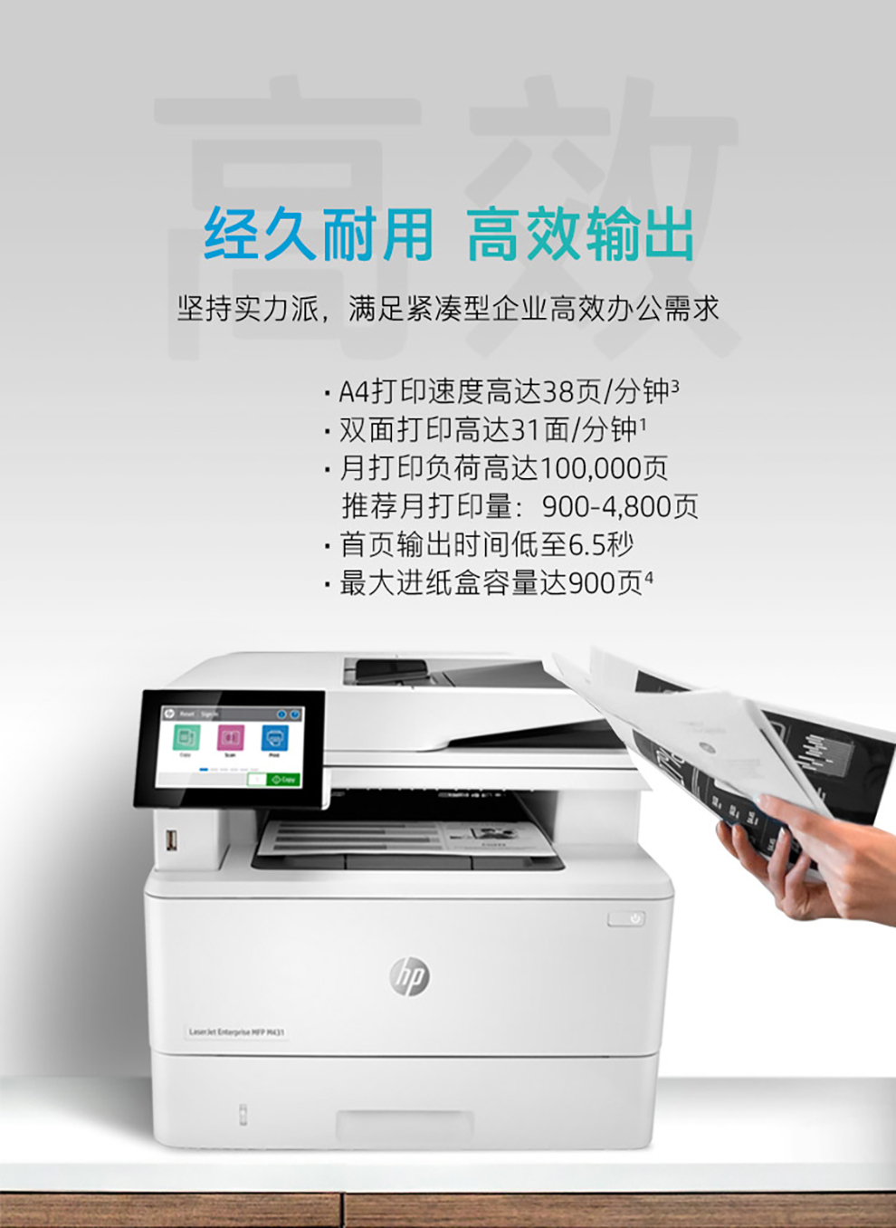 惠普(HP) M431f A4黑白激光多功能一體機(jī) 自動雙面 打印 復(fù)印 掃描 傳真有線連接(原廠1年上門)