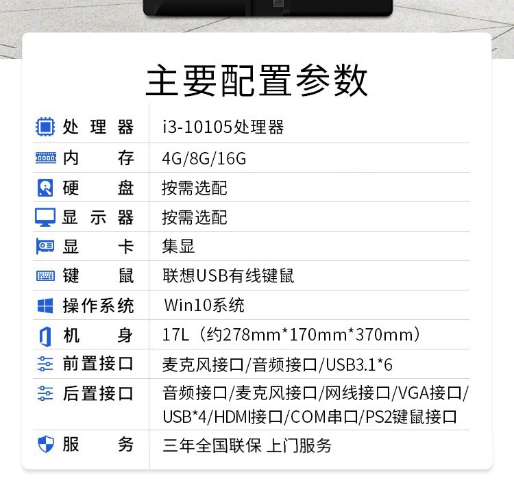 聯(lián)想/LENOVO E98 臺式計(jì)算機(jī) 酷睿i3-10105 8G內(nèi)存 256G固態(tài) 四核處理器商務(wù)稅控辦公電腦單主機(jī)