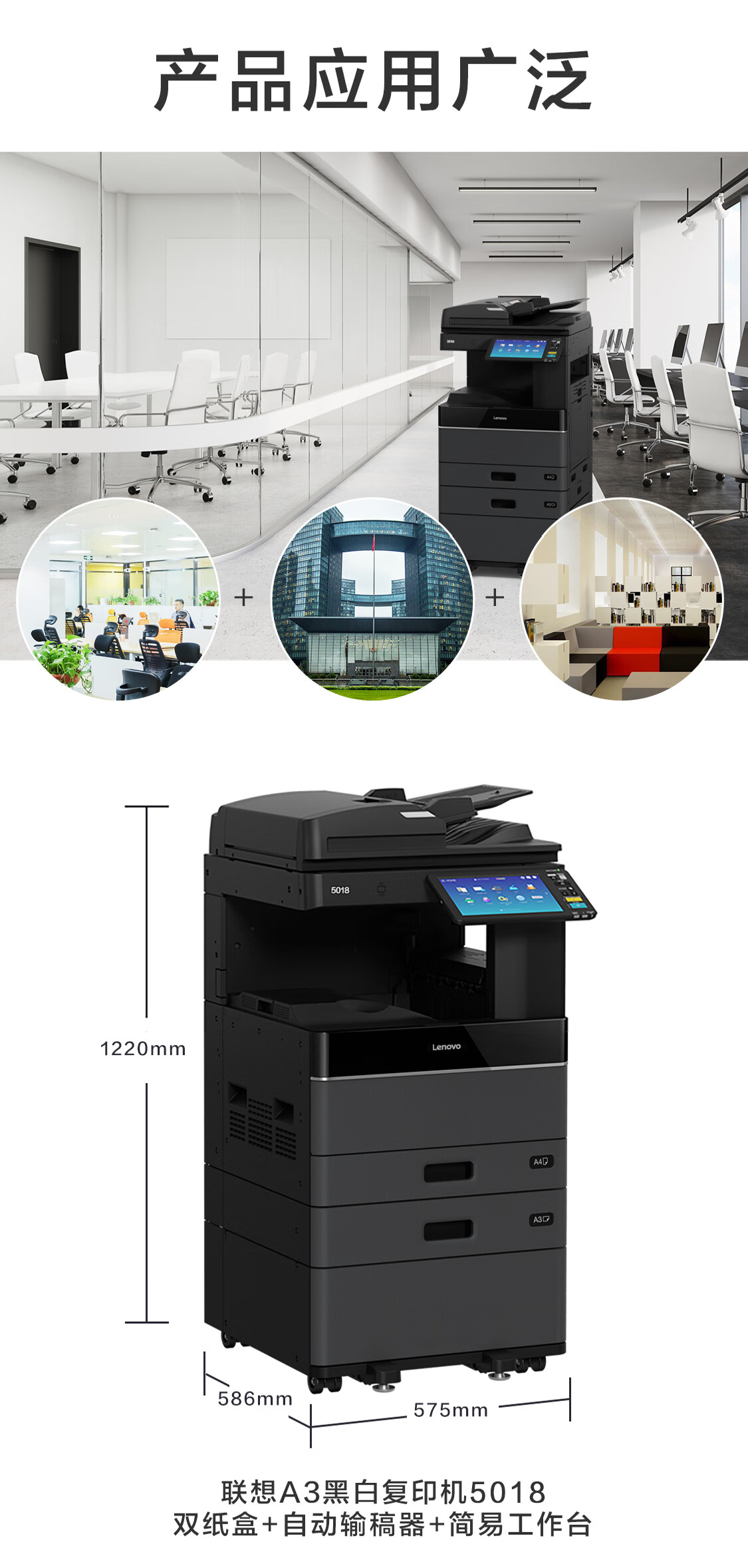 聯(lián)想(Lenovo)5018 A3黑白激光復(fù)合打印機(jī)(自動雙面輸稿器+雙紙盒+工作臺)有線網(wǎng)絡(luò) 支持上門安裝