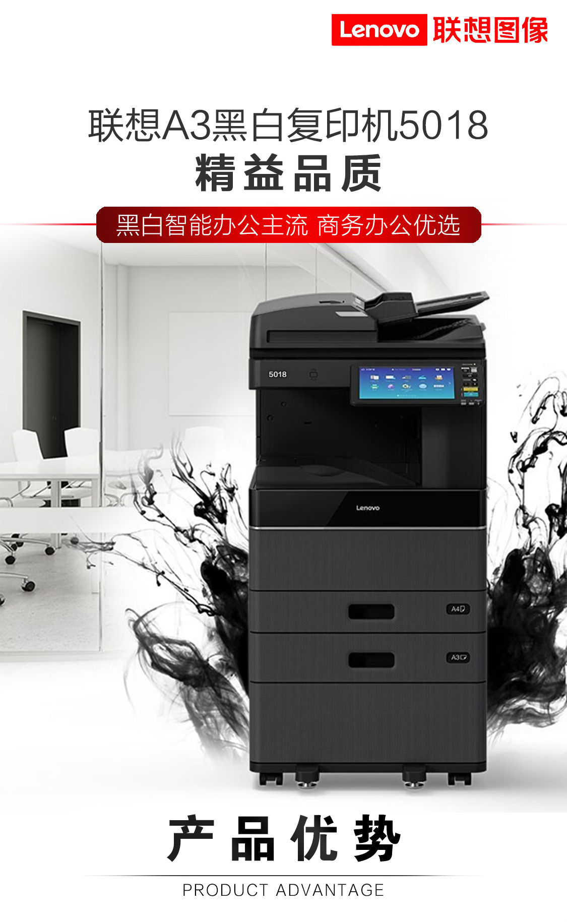 聯(lián)想/LENOVO 5018 A3 黑白打印機(jī) A3黑白激光復(fù)合打印機(jī)(自動雙面輸稿器+雙紙盒+工作臺)有線網(wǎng)絡(luò)