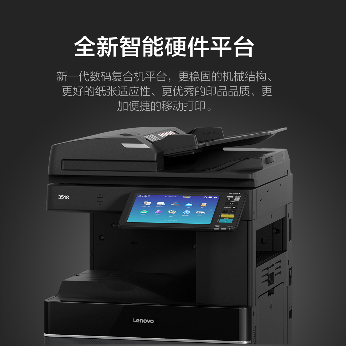 聯(lián)想(Lenovo)3518 A3黑白激光復(fù)合多功能一體打印機(jī)(自動雙面輸稿器+雙紙盒+工作臺)有線網(wǎng)絡(luò) 支持上門安裝