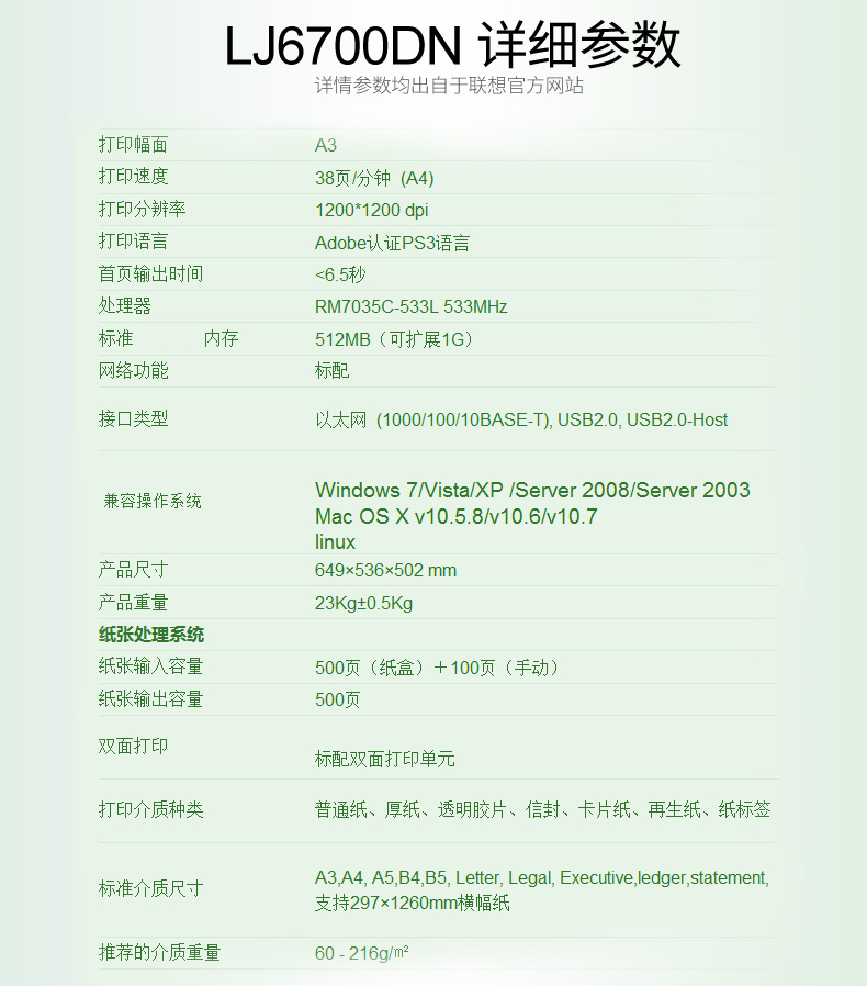 聯(lián)想(Lenovo)LJ6700DN A3/A4黑白激光打印機 自動雙面 有線網(wǎng)絡(luò) 辦公商用