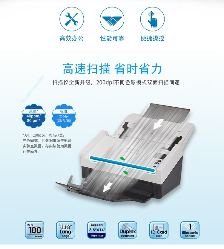 影源掃描儀LV140彩色A4幅面自動雙面饋紙式掃描儀 多頁文檔自動掃描成1個PDF文件,JPG、TIFF、PDF、MPDF等