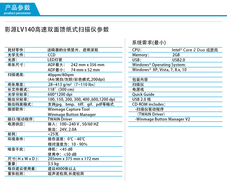 影源/WinMage LV140 掃描儀 彩色A4幅面自動雙面饋紙式掃描儀 多頁文檔自動掃描成1個PDF文件,JPG、TIFF、PDF、MPDF國產雙系統(tǒng)