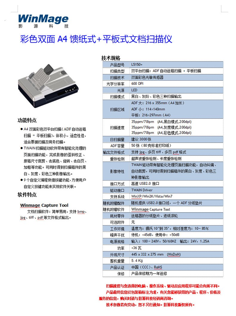 影源/WinMageL5150掃描儀...