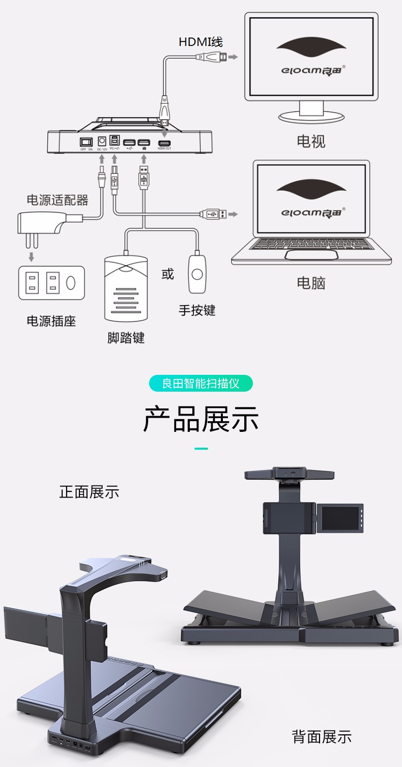 良田/eloam BS3000PRO 高拍儀 高拍儀掃描儀2200萬(wàn)像素高清定焦語(yǔ)音控制高速掃描儀辦公家用文件書(shū)籍