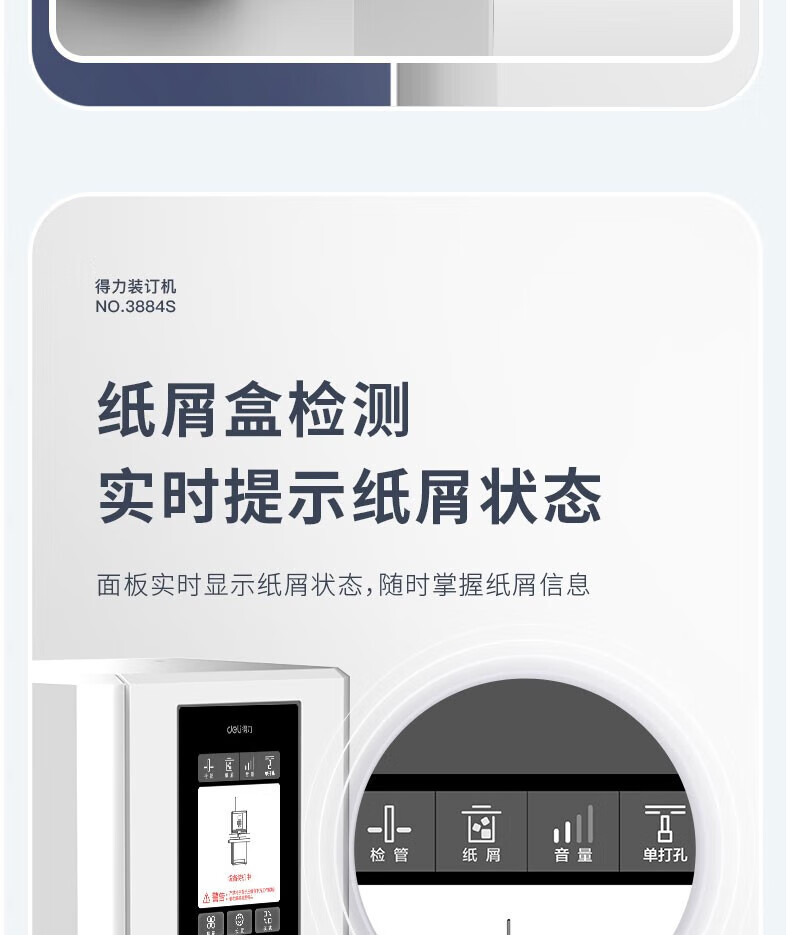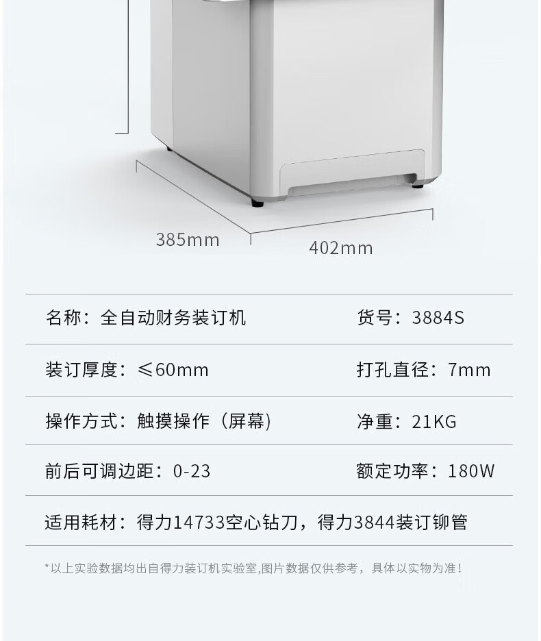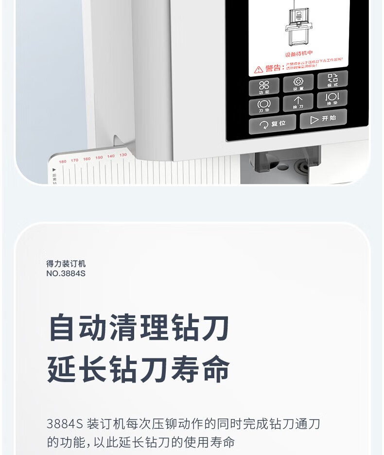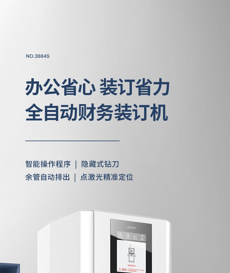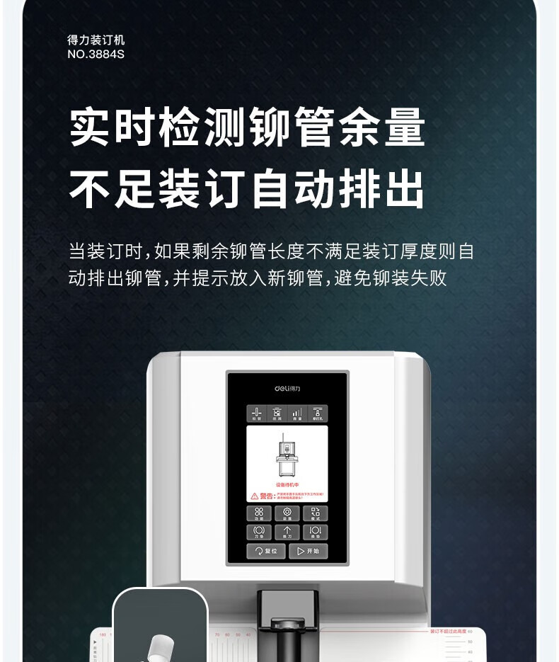 得力/deli 3884S 裝訂及打孔類 60mm全自動(dòng)財(cái)務(wù)憑證裝訂機(jī) 會(huì)計(jì)文件熱熔鉚膠管打孔機(jī) 觸控屏幕一鍵操作 600頁(yè) 全自動(dòng)裝訂
