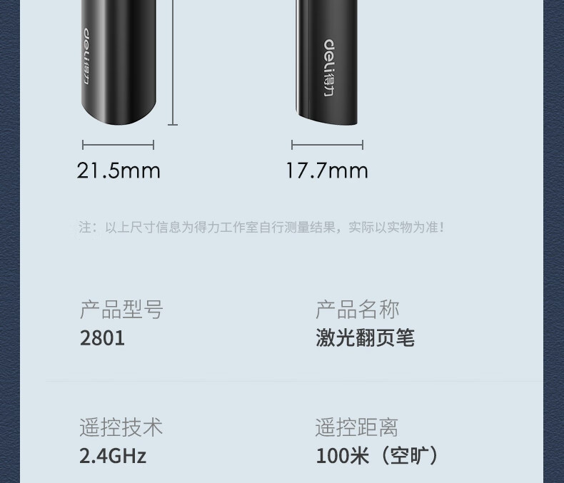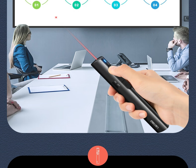 得力/deli 2801 激光筆 充電超鏈切換教鞭 ppt翻頁筆 雙尾插 電子筆演講筆激光翻頁筆 無線演示器 紅光 黑