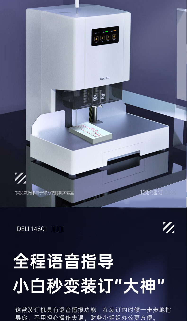 得力憑證裝訂機(jī)財(cái)務(wù)專用全自動(dòng)智能激光辦公會(huì)計(jì)檔案熱熔鉚管裝訂 14660S【全自動(dòng)】 智能狀態(tài)檢測50mm 全國聯(lián)保 標(biāo)配