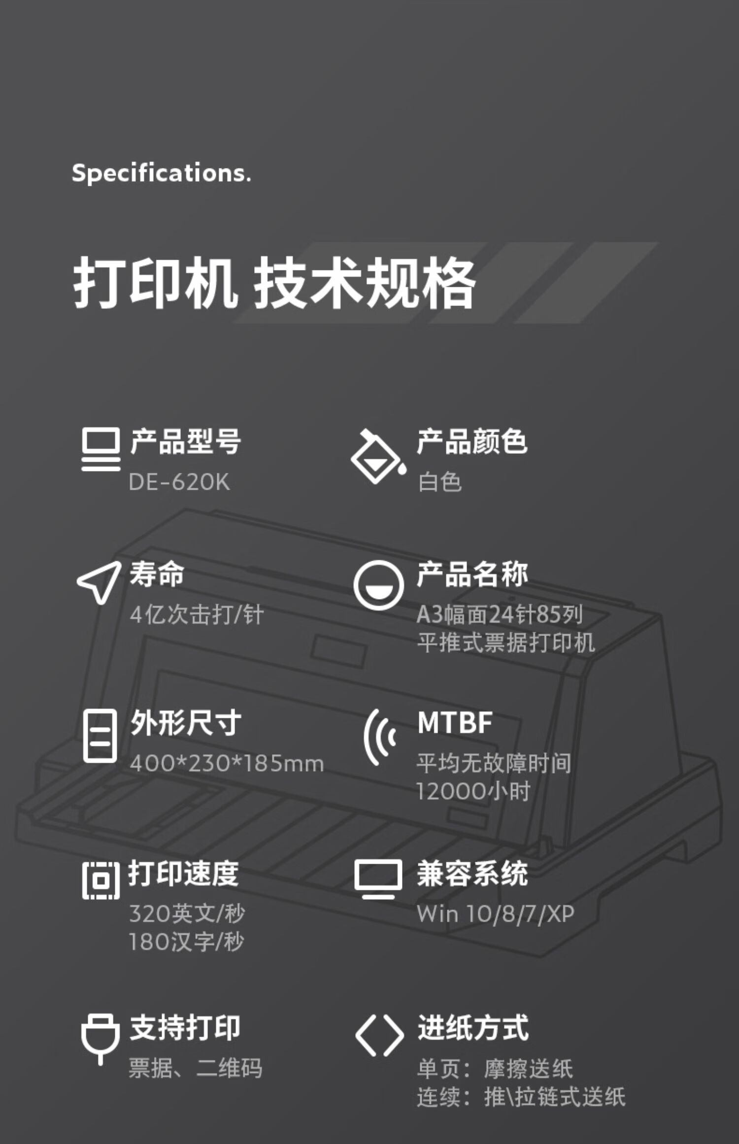 得力(deli) 針式打印機系列 營改增稅務發(fā)票 出入庫發(fā)貨單 票據(jù)打印機 平推式 7聯(lián) 24針82列 前后進紙