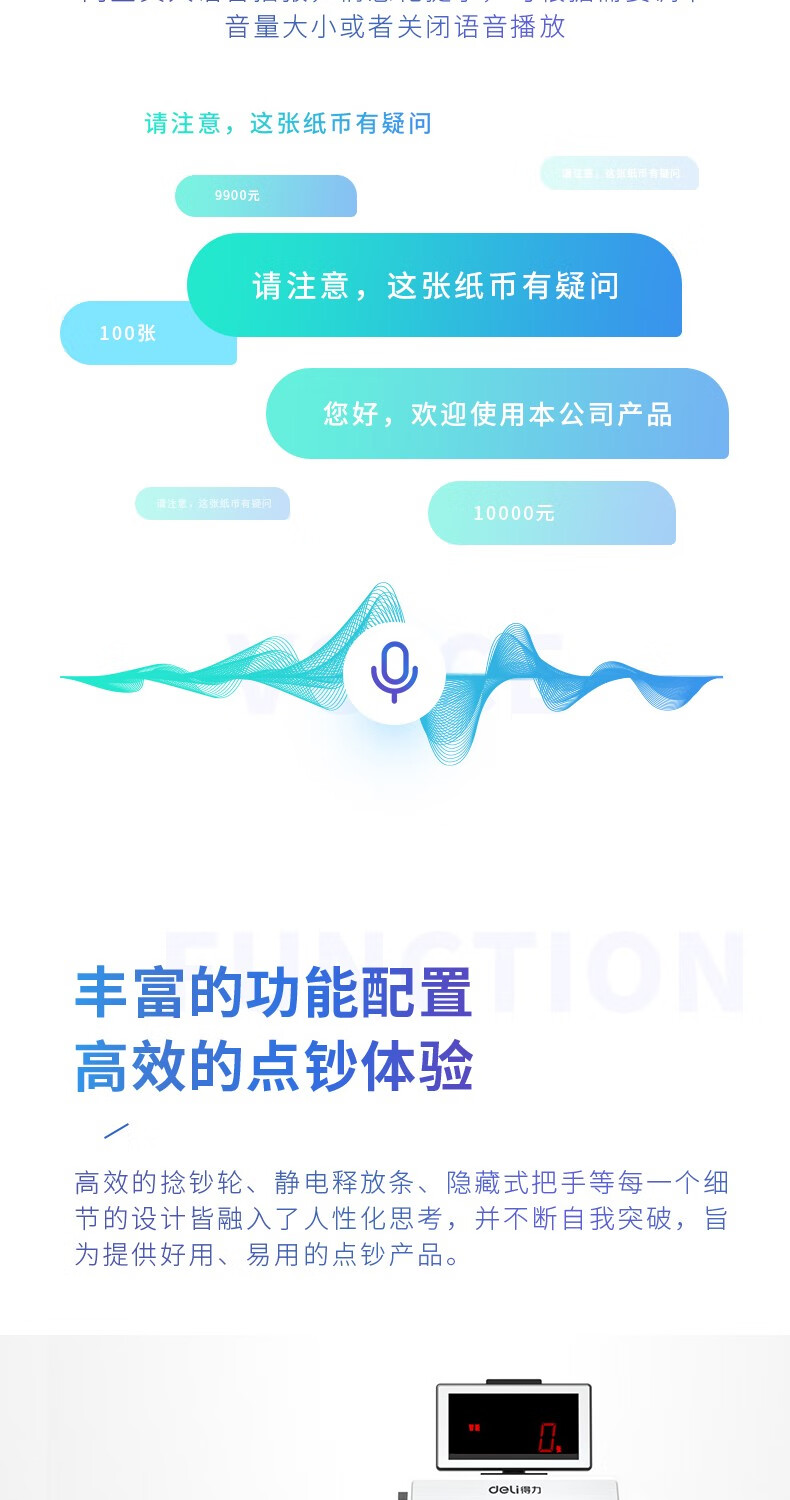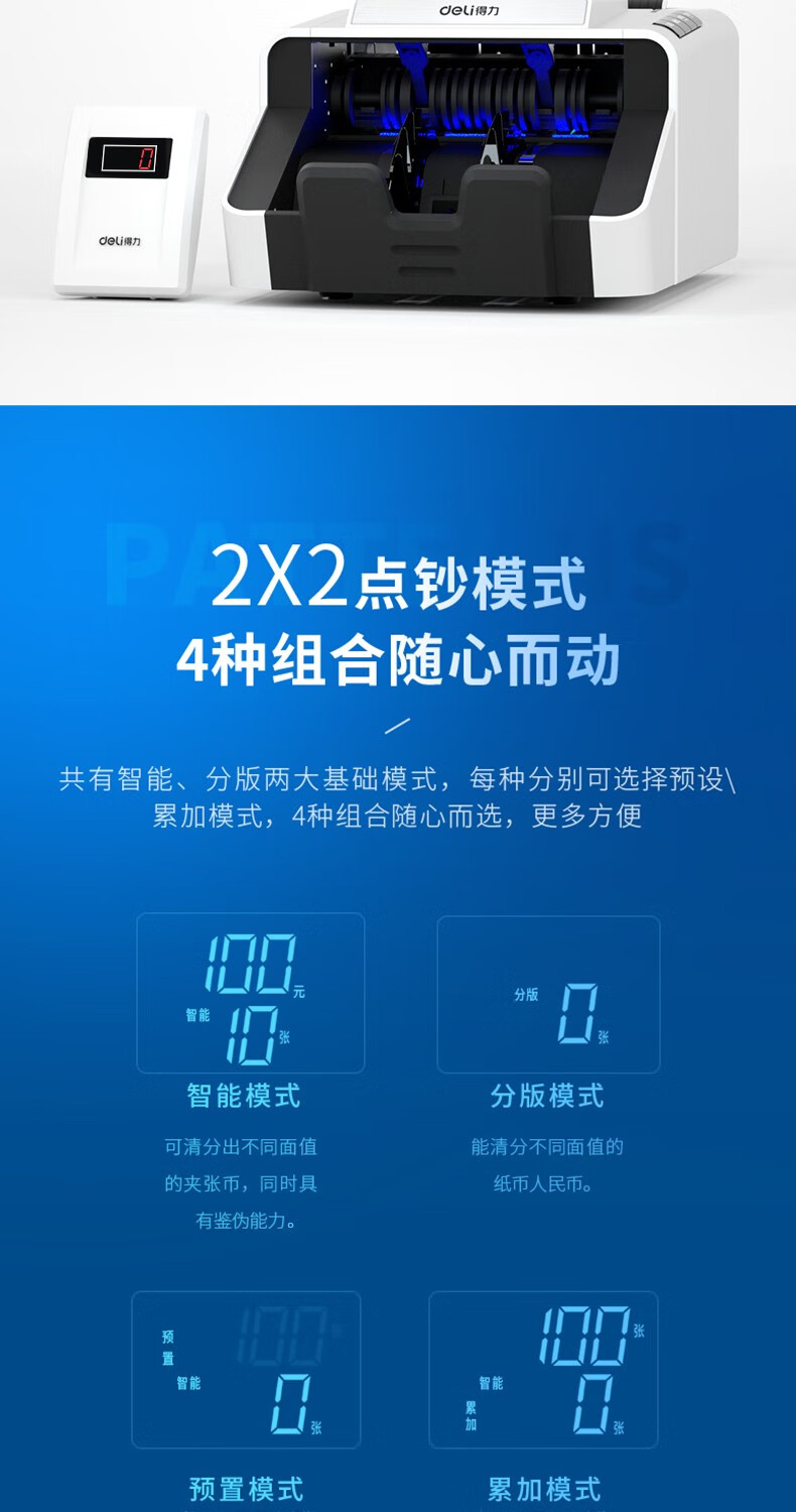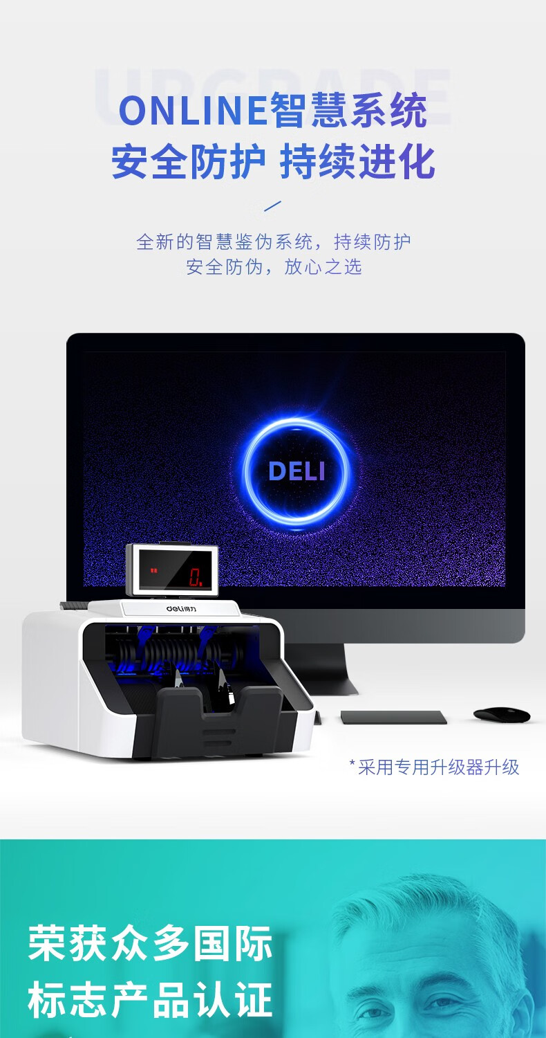 得力(deli)支持新版人民幣高配驗鈔點鈔機(jī)數(shù)錢機(jī)智能語音收銀支付 【國標(biāo)B類】智能系統(tǒng)