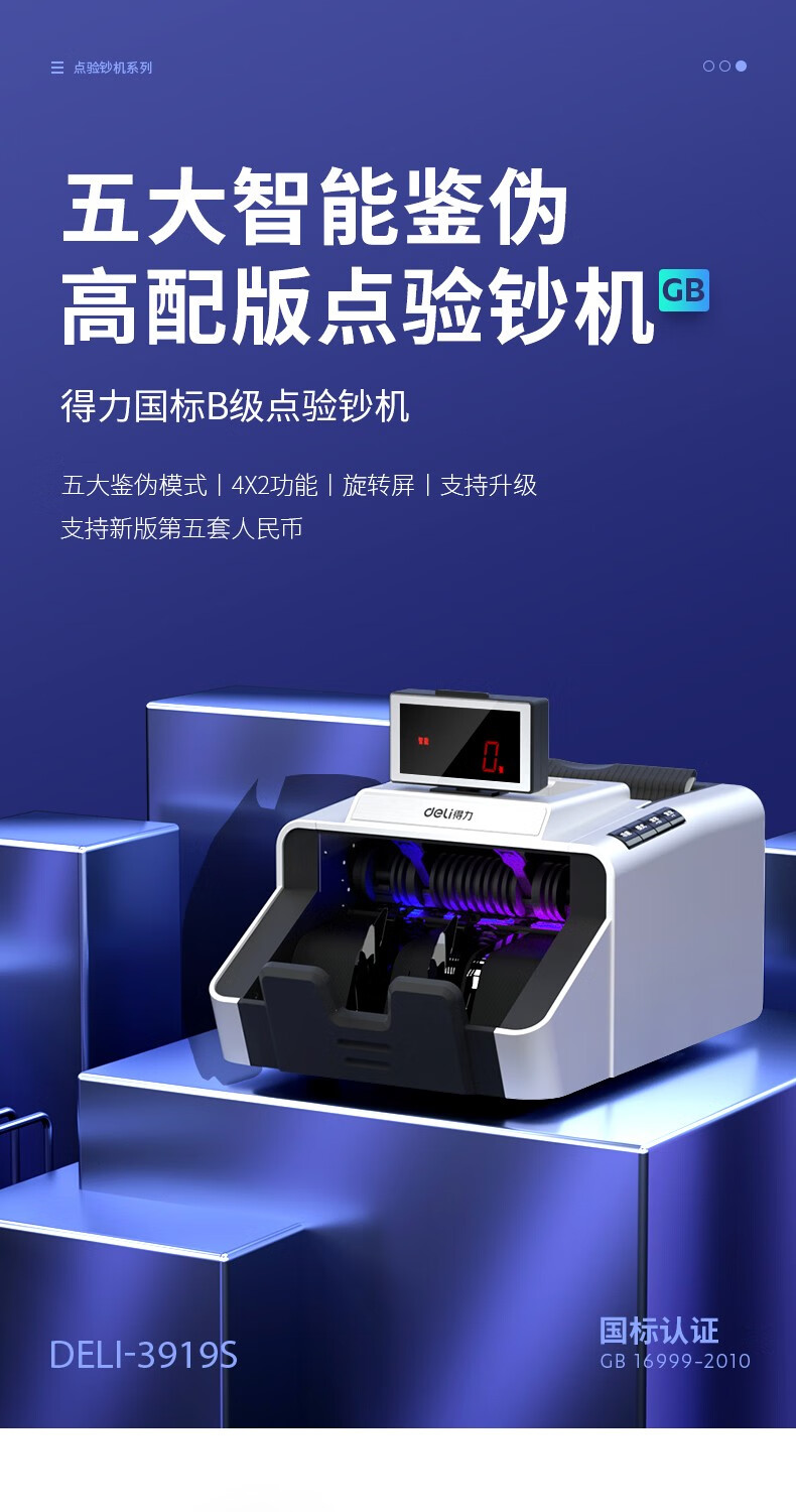 得力/deli 3919S 點鈔機(jī) 支持新版人民幣高配驗鈔點鈔機(jī)數(shù)錢機(jī)智能語音收銀支付 【國標(biāo)B類】智能系統(tǒng)