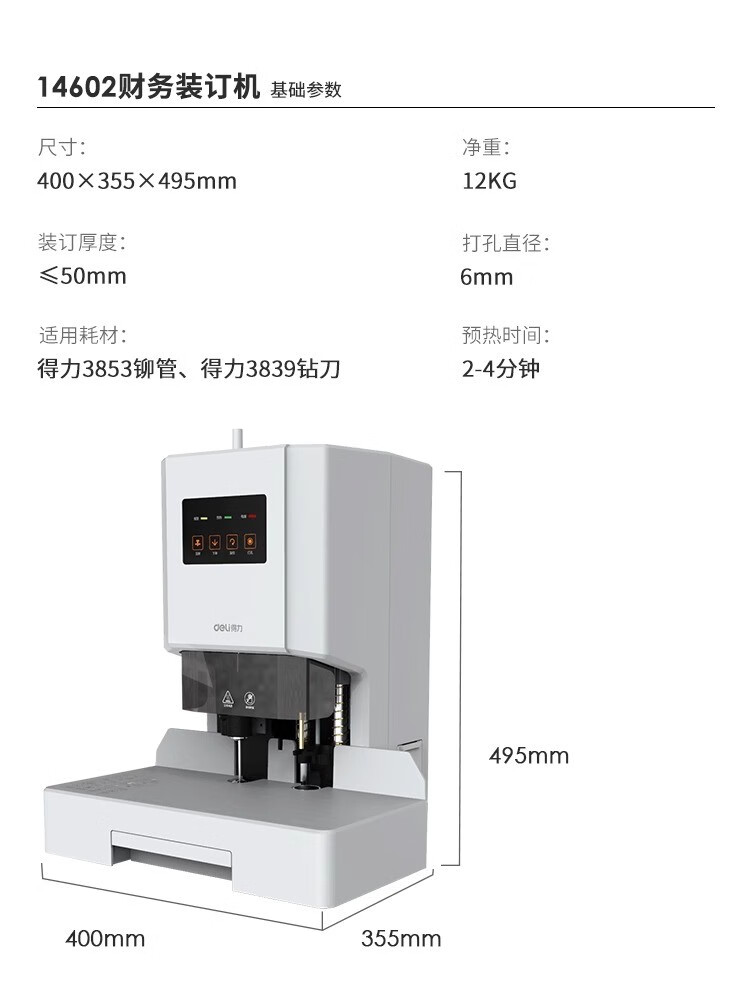 得力/deli 14602 裝訂及打孔類 財務憑證全自動會計檔案熱熔鉚管裝訂機 全國聯(lián)保