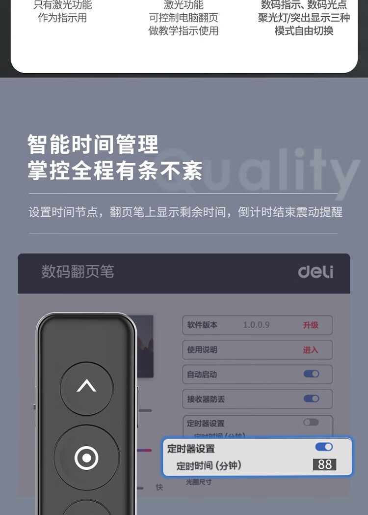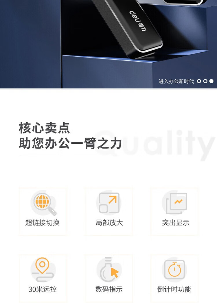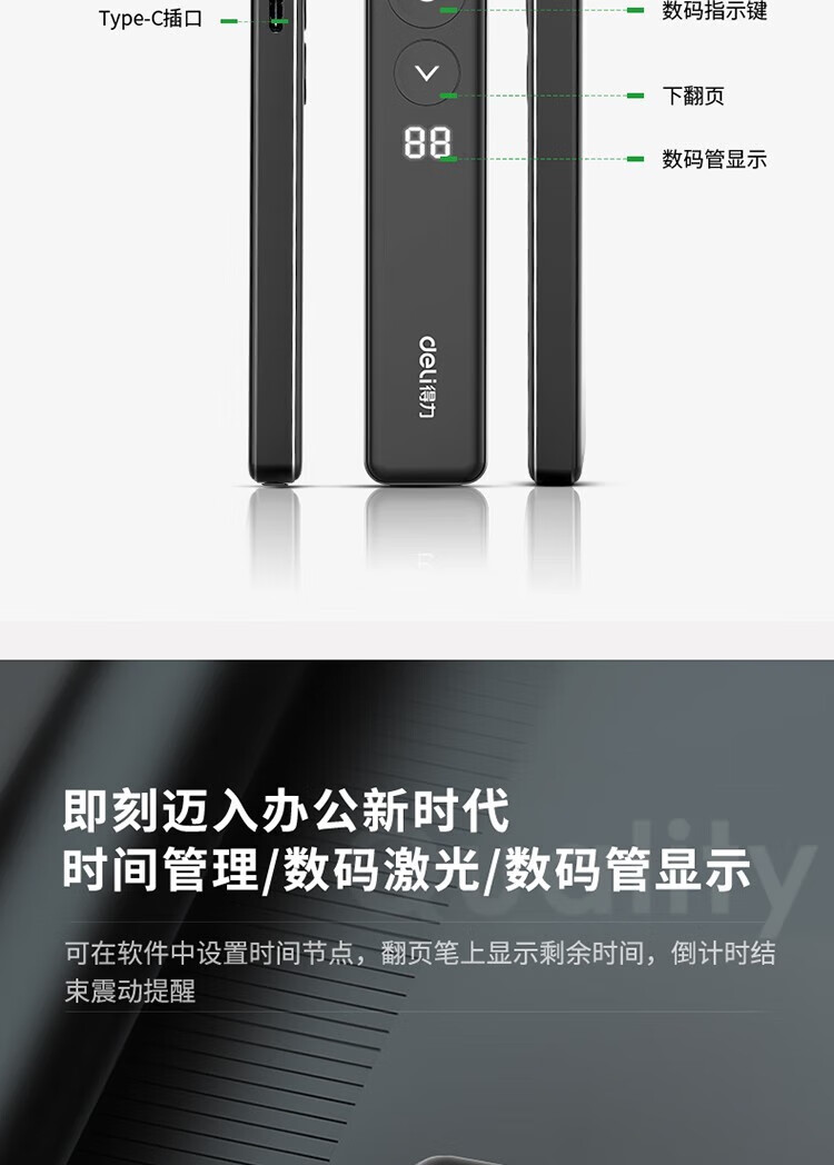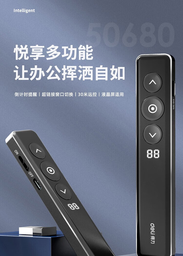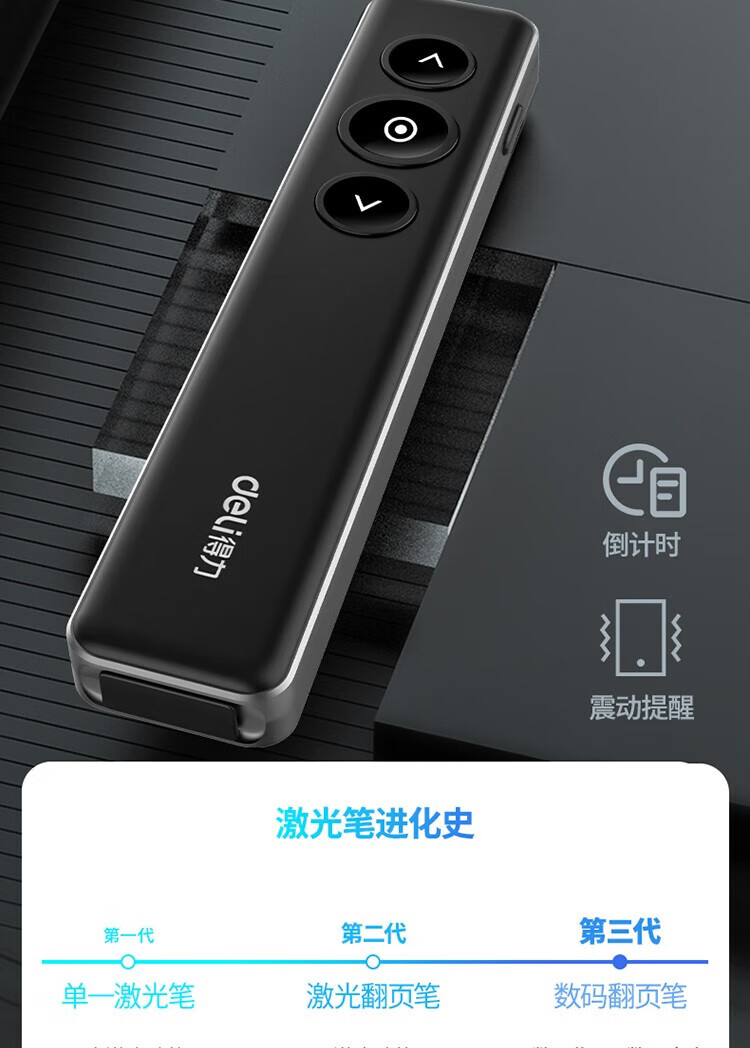 得力/deli 50680 激光筆 spotlight2.0計時提醒聚光放大凸顯PPT投影筆(非物理激光)LED液晶大屏數(shù)碼光點(diǎn)激光翻頁筆50680