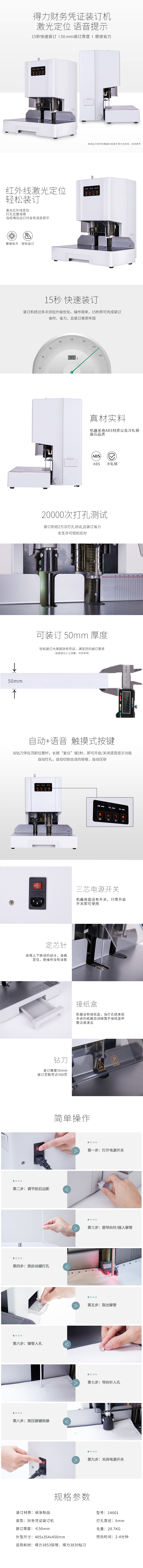 得力會計憑證裝訂機 文書檔案財務(wù)票據(jù)賬本自動電動打孔裝訂機鉚管 14601
