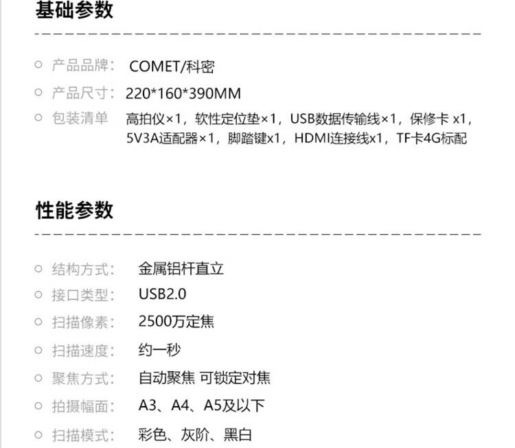 科密(comet) GP2318Z高拍儀 2500萬像素 可在線升級(jí)掃描儀 A3A4文件資料照片證件 HDMI接口 書籍展平成冊(cè)