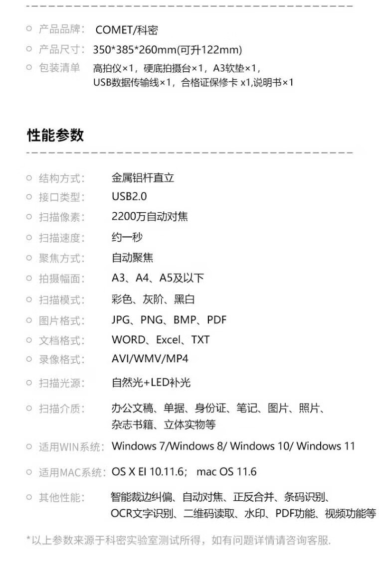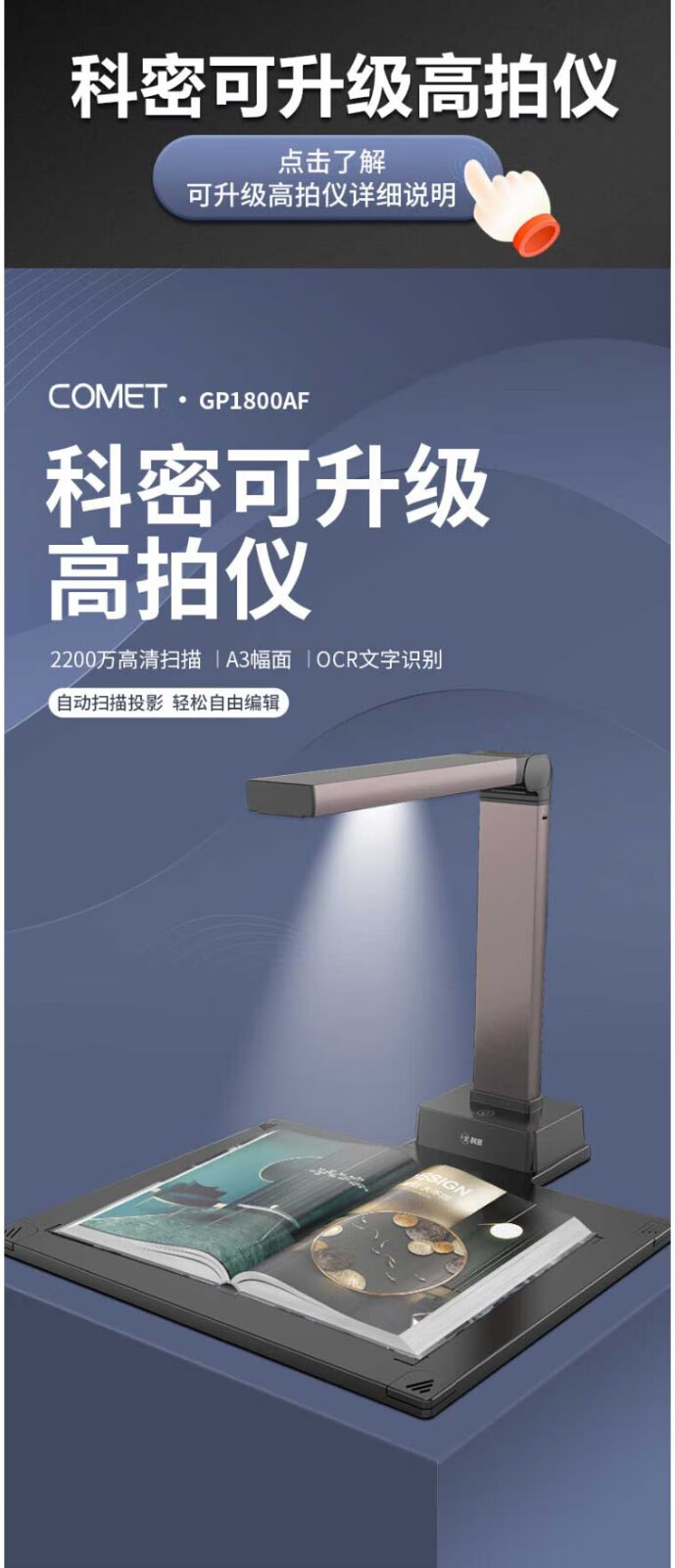 科密/Comet GP1800AF 高拍儀 2200萬(wàn)高清像素 A3A4掃描儀遠(yuǎn)程網(wǎng)課圖書(shū)館檔案室 OCR圖文轉(zhuǎn)換