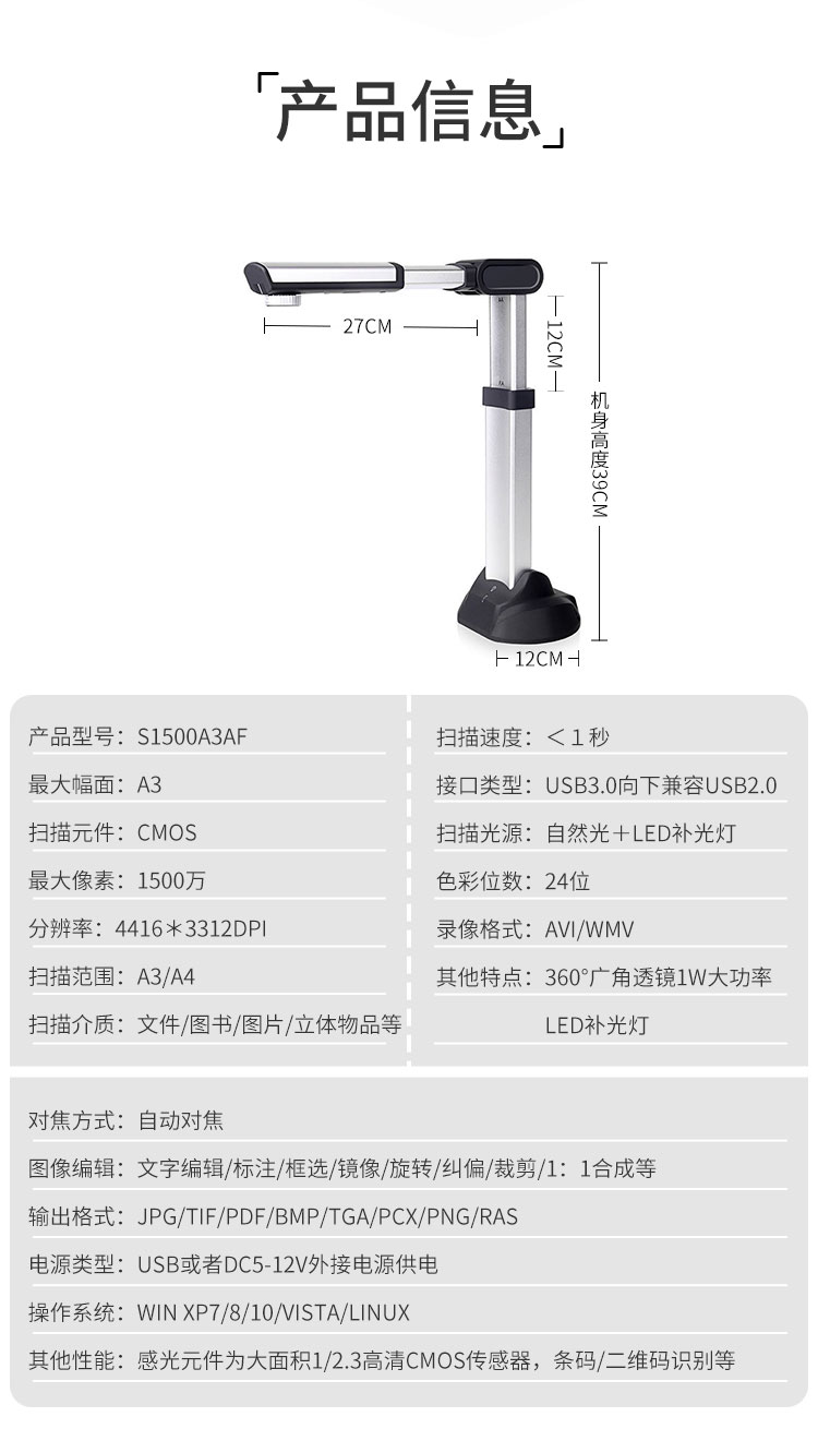 良田/eloam S1500A3AF 高拍儀 視頻展臺(tái) 高速掃描儀 1500萬(wàn)像素A3掃描自動(dòng)對(duì)焦合同票據(jù)照片掃描