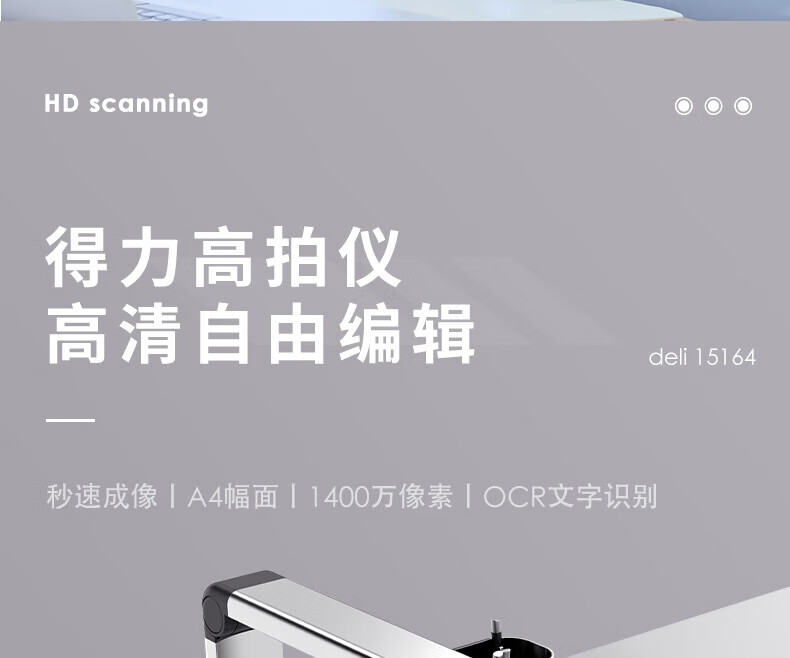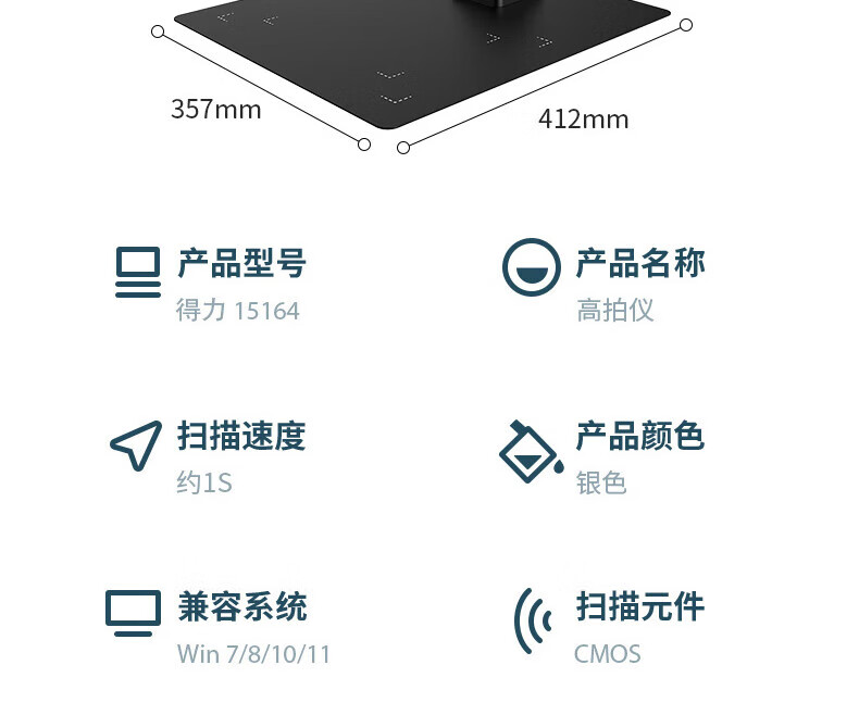 得力/deli 15160 高拍儀 高拍儀千萬高清像素A4幅面軟底文檔證件掃描連續(xù)掃描自動(dòng)糾偏 1600萬-A4硬底-OCR識別