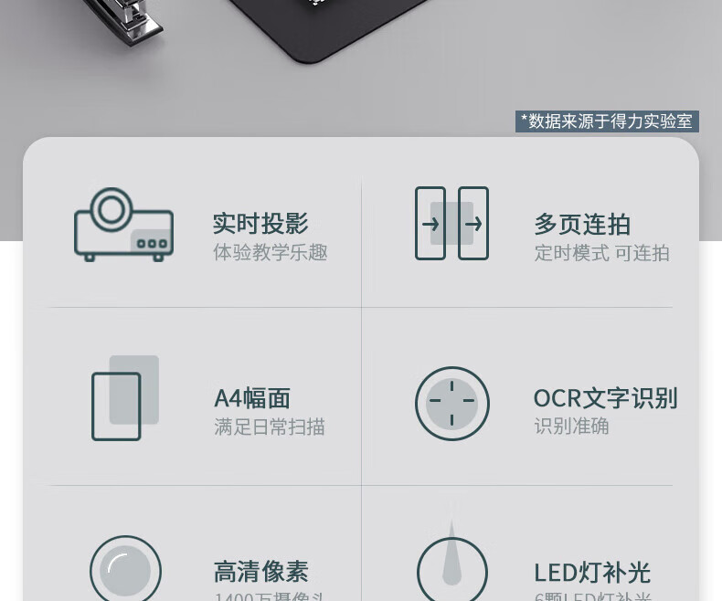 得力高拍儀千萬高清像素A4幅面軟底文檔證件掃描連續(xù)掃描自動(dòng)糾偏 1600萬-A4硬底-OCR識別15160
