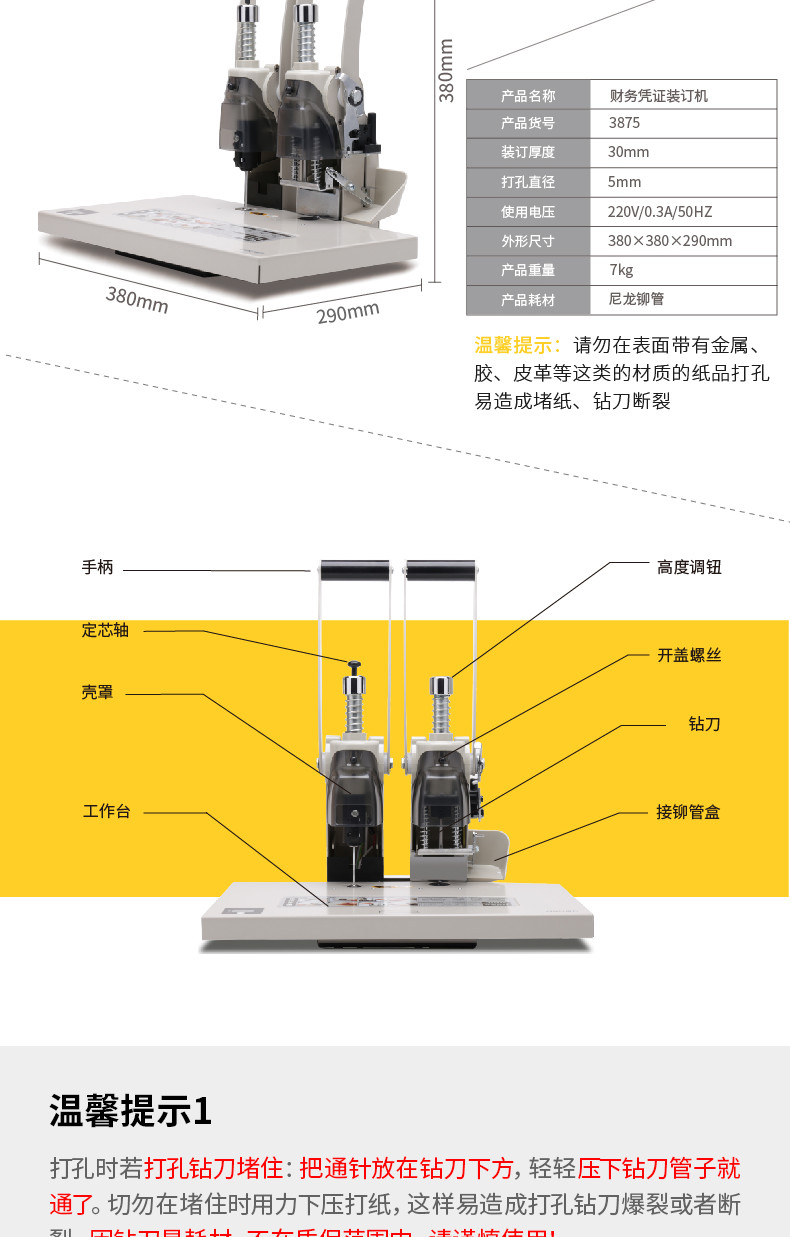 得力/deli 3875 裝訂及打孔類 裝訂機(jī)財(cái)務(wù)憑據(jù)憑證裝訂機(jī)會(huì)計(jì)專用手動(dòng)打孔機(jī)熱熔鉚管膠裝機(jī)辦公用品