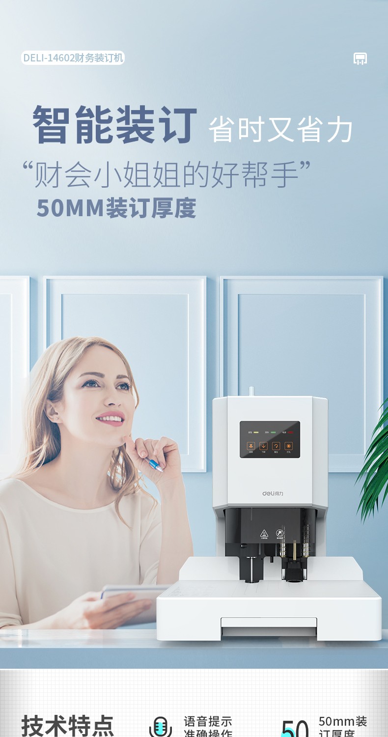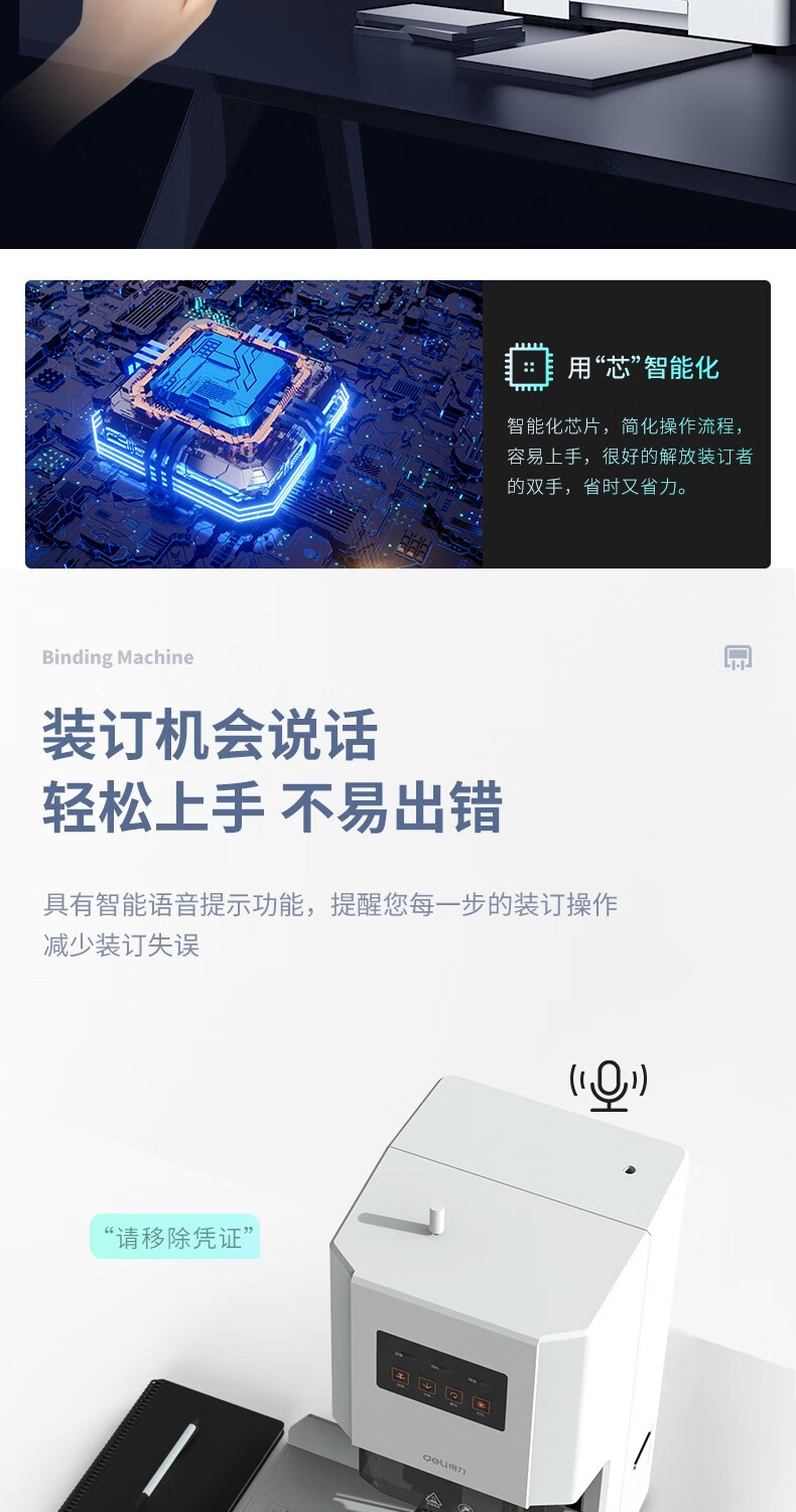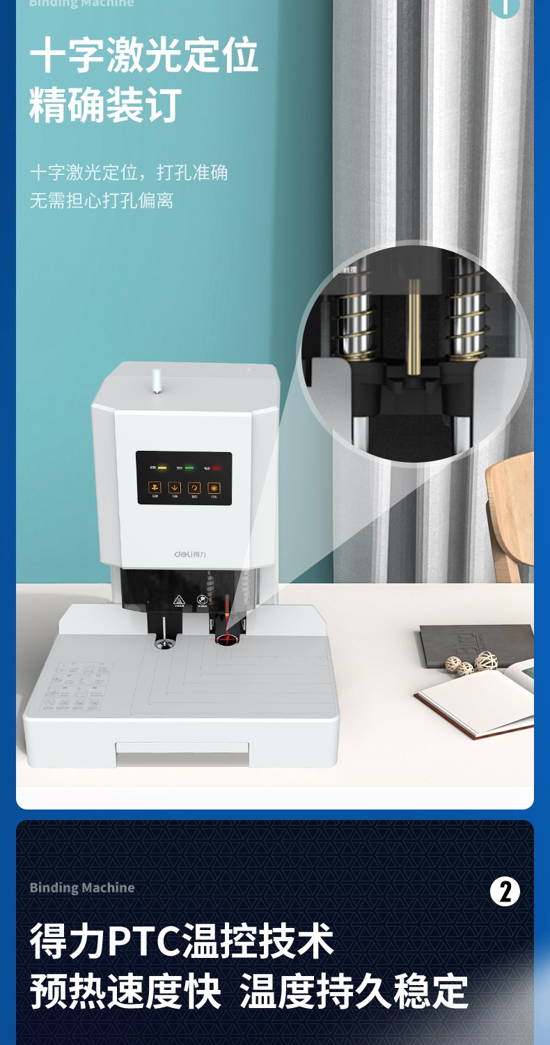 得力(deli) 自動財(cái)務(wù)憑證裝訂機(jī) 電動檔案文件打孔機(jī) 全自動 14666/60MM裝訂厚度+激光定位+語音