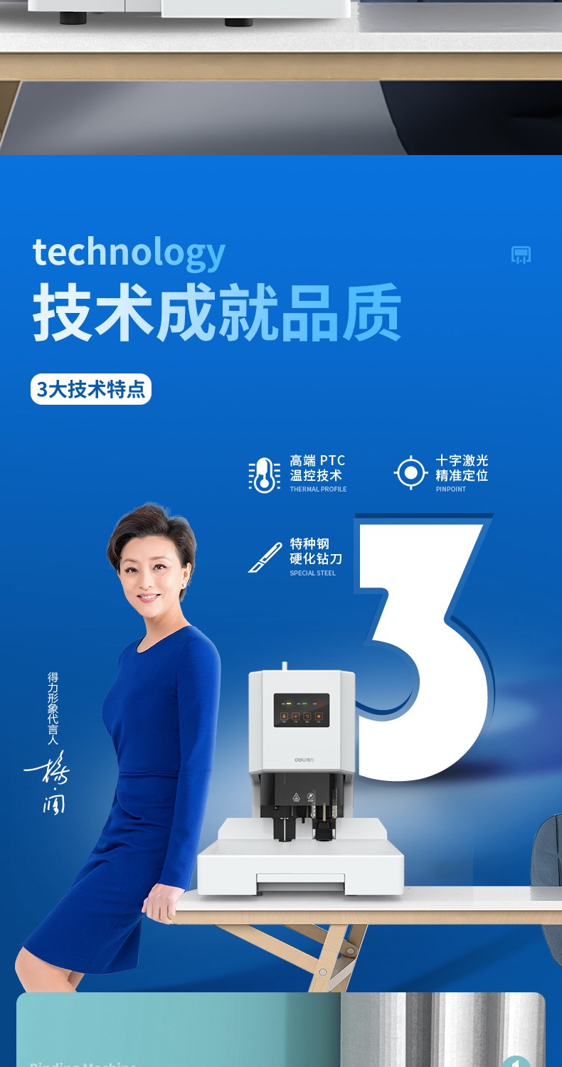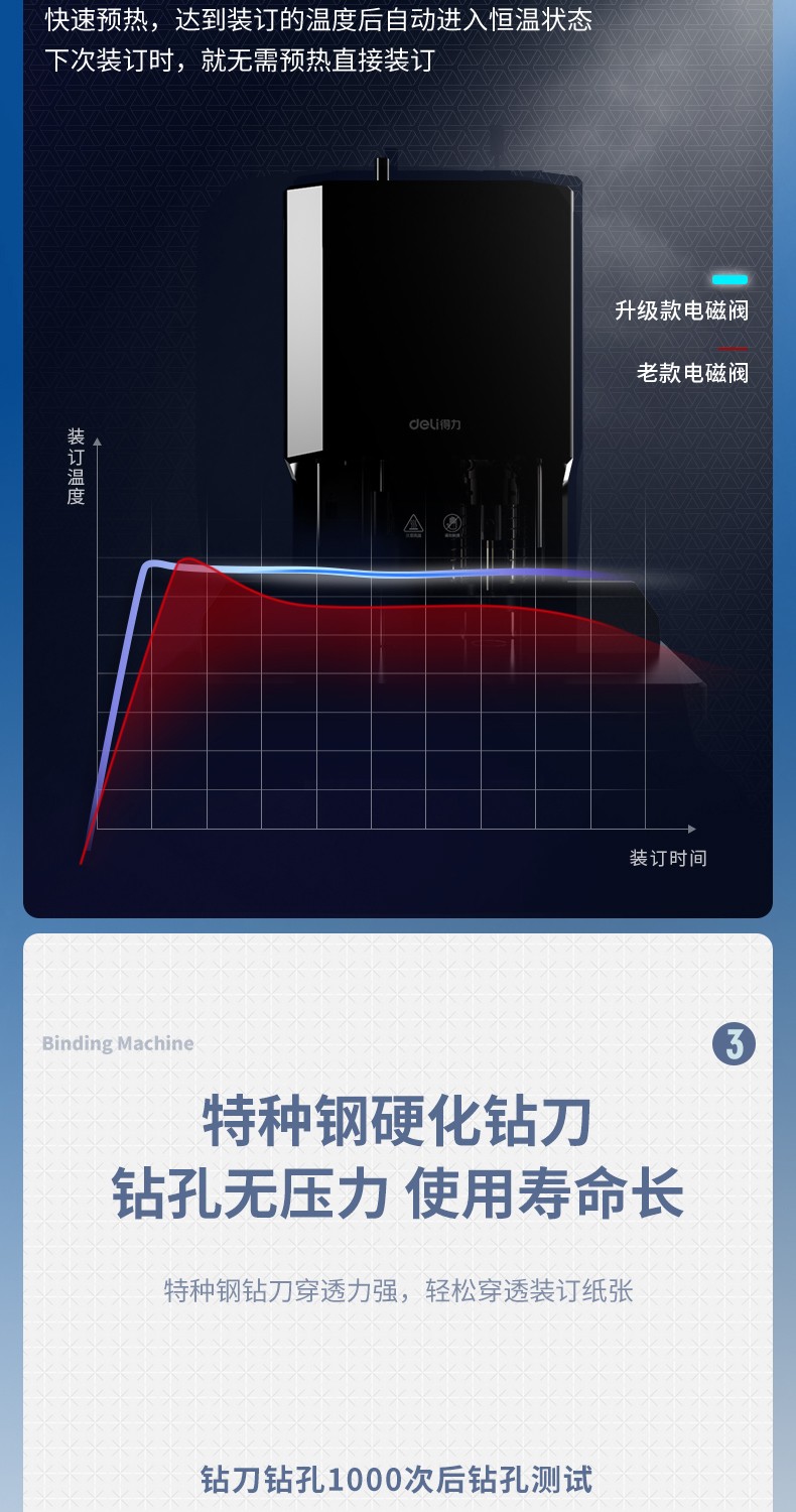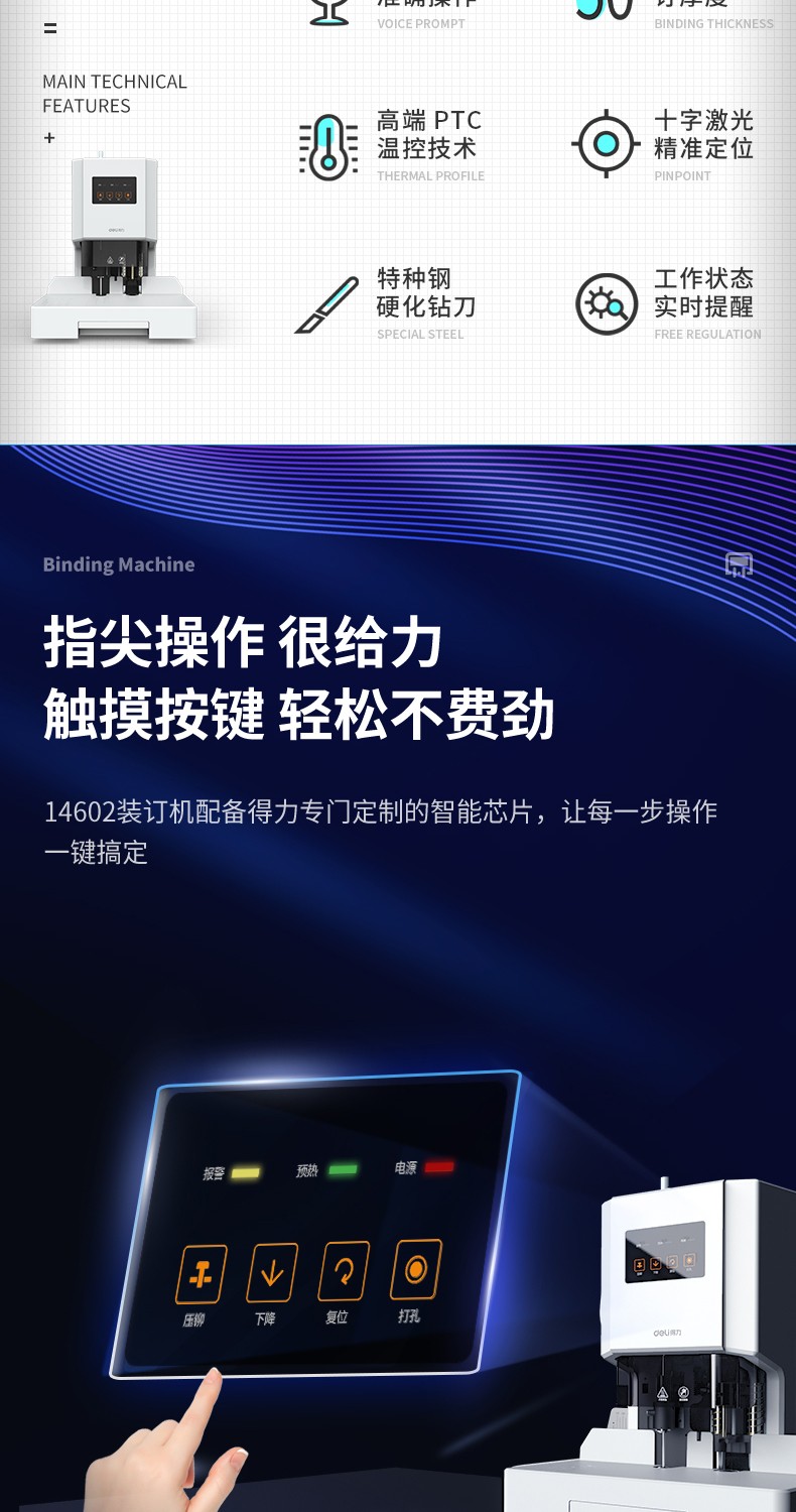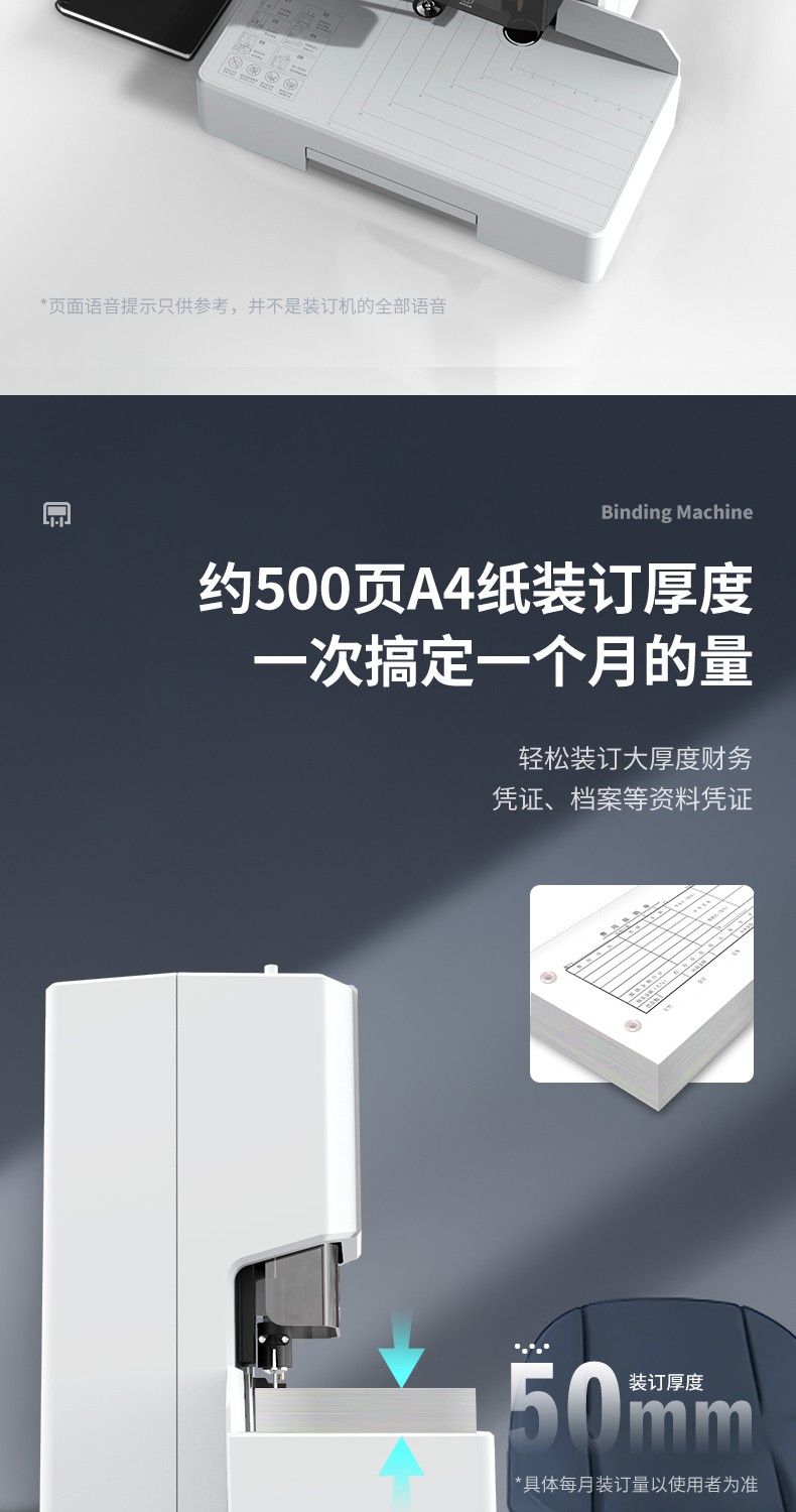 得力(deli) 自動財(cái)務(wù)憑證裝訂機(jī) 電動檔案文件打孔機(jī) 全自動 14666/60MM裝訂厚度+激光定位+語音