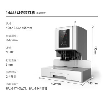 得力/deli 14666 裝訂及打孔類 自動財(cái)務(wù)憑證裝訂機(jī) 電動檔案文件打孔機(jī) 全自動 14666/60MM裝訂厚度+激光定位+語音