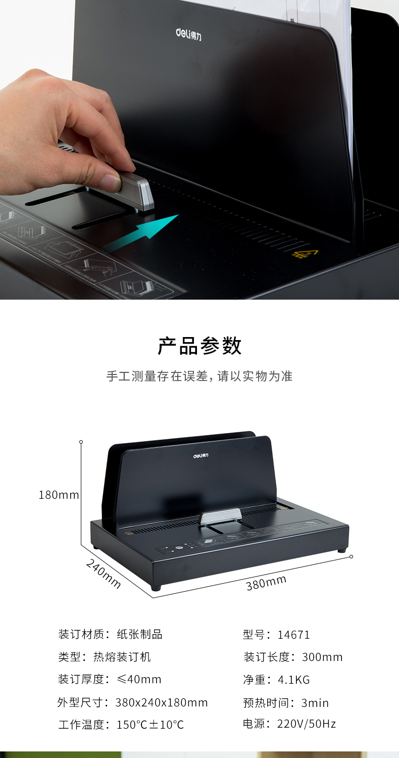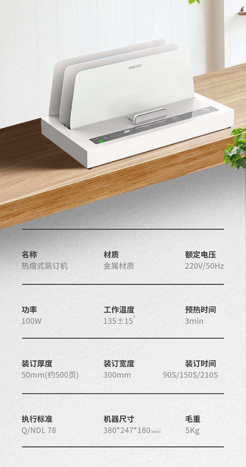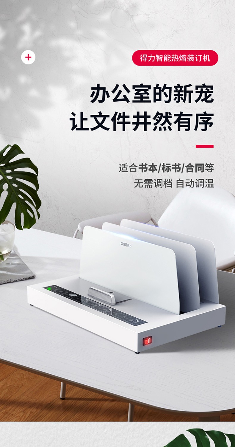 得力(deli) 熱熔裝訂機(jī)合同財(cái)務(wù)會計(jì)憑證裝訂機(jī)封套膠裝機(jī)全自動標(biāo)書 14671熱熔裝訂機(jī)(裝訂厚度40mm)
