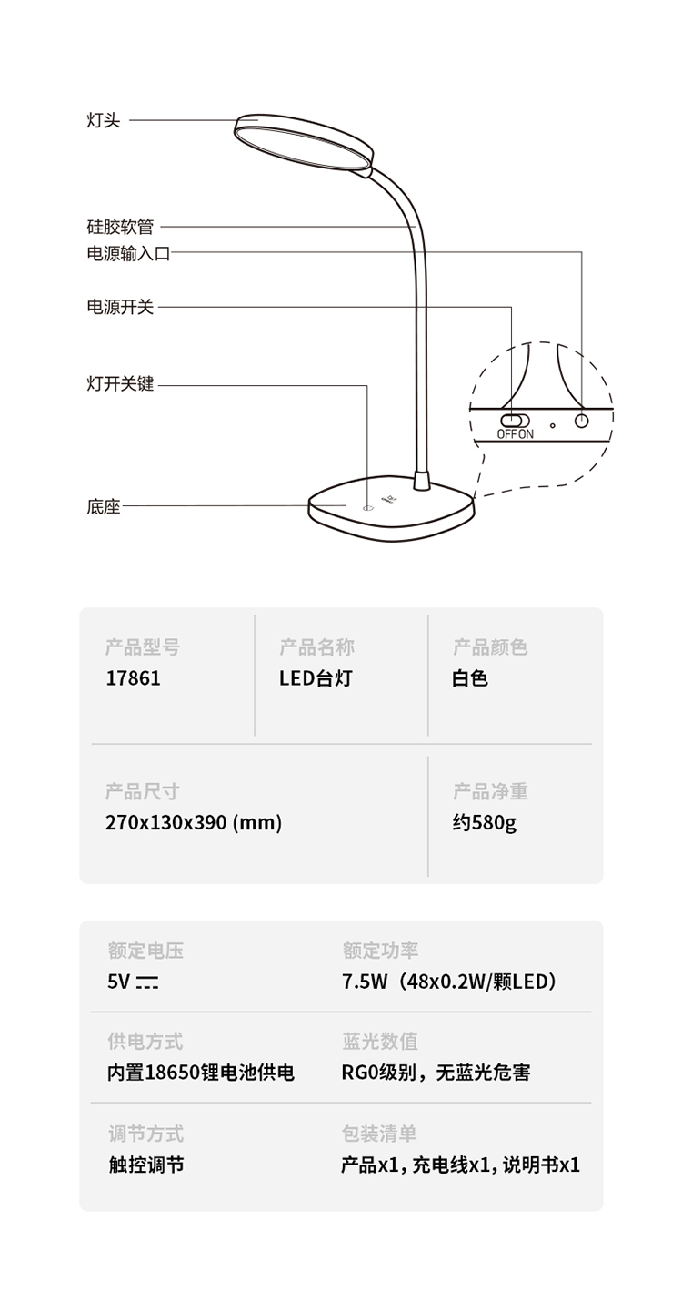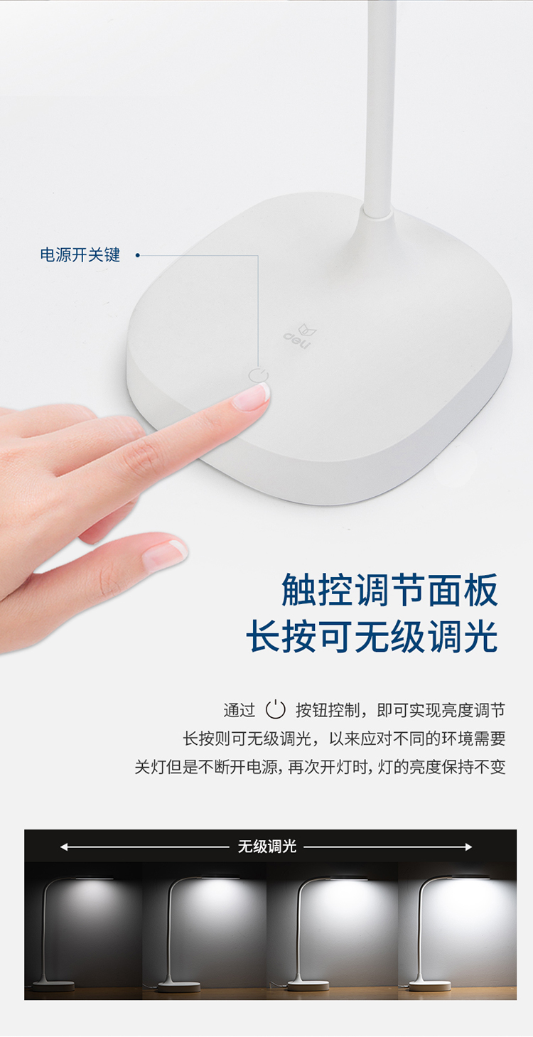 得力/deli 17861 臺燈/壁燈/床頭燈/落地?zé)?鋰電池LED無藍(lán)光臺燈 無極調(diào)光辦公學(xué)習(xí)夜燈 開學(xué)升學(xué)季禮物 充電式