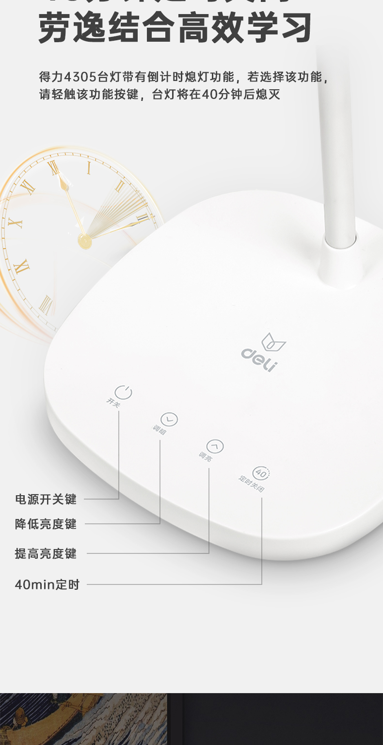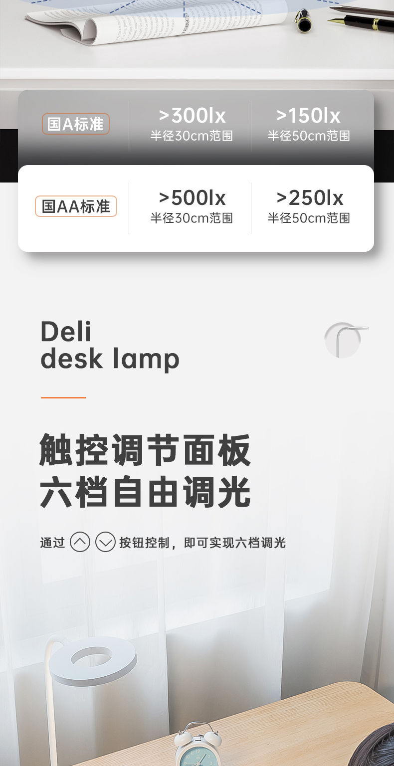 得力/deli 4305 臺(tái)燈/壁燈/床頭燈/落地?zé)?AA級(jí)減藍(lán)光臺(tái)燈 工作閱讀觸控調(diào)光兒童學(xué)生學(xué)習(xí)臺(tái)燈